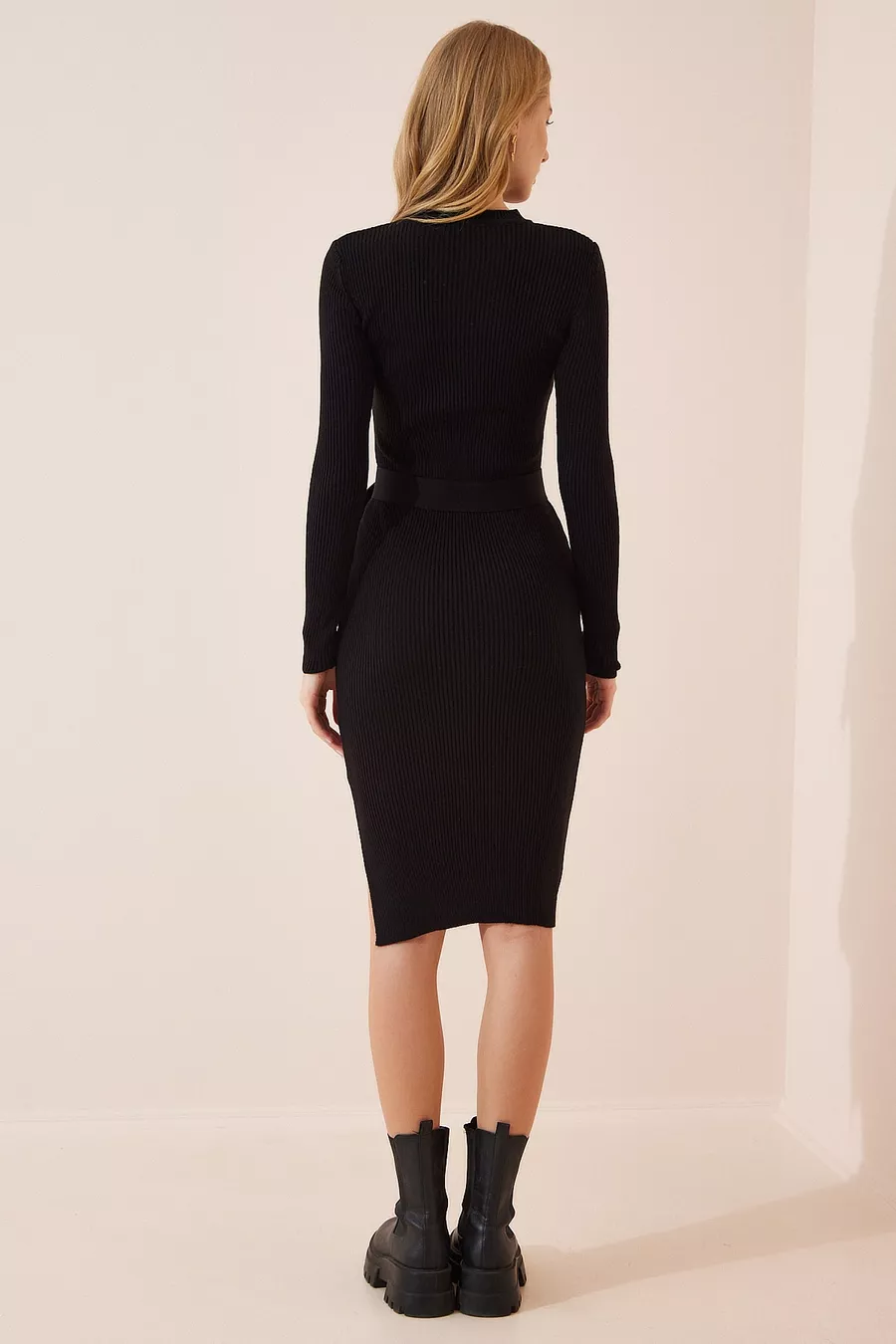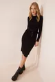 Damen Schwarzes Strickkleid mit Rundhalsausschnitt aus Lycra