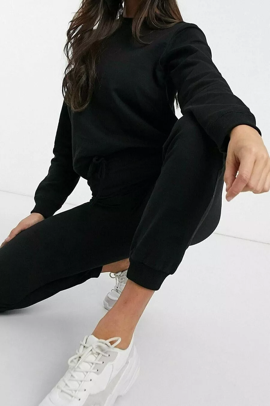 Damen Schwarzes Baumwoll-Pyjama-Set
