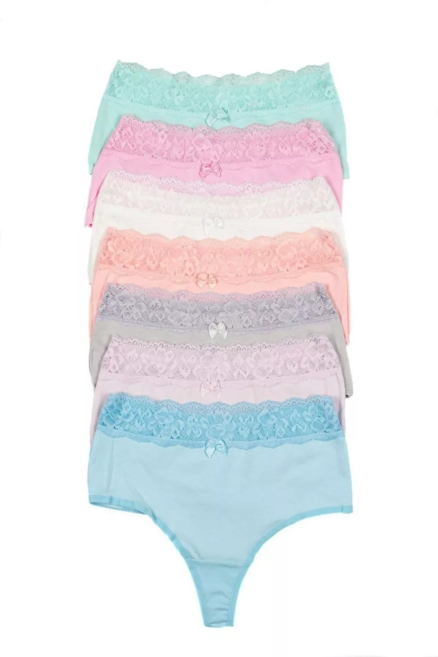 Damen Slip Hohe Taille Tanga Große Größen 7er-Pack Lachsfarben
