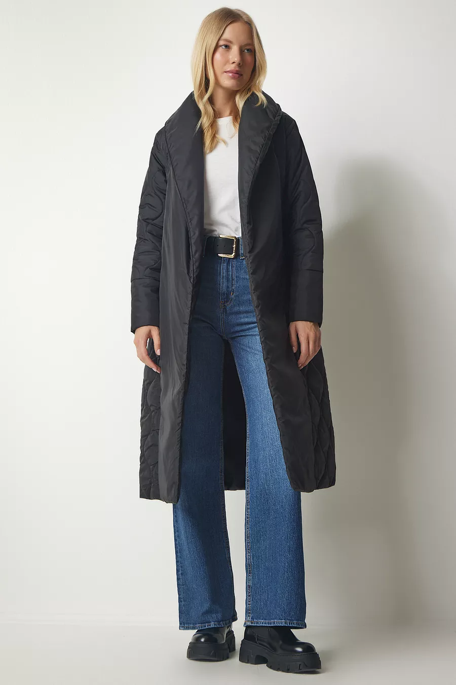 Schnitt: Regular Stoffart: Gewebe Farbe: Schwarz Kragenart: Schalkragen Muster: Uni Produktdetails: Mit Gürtel Produkttyp: Einfarbig Taschen: Zwei Taschen Futter: Gefüttert Länge: Lang Silhouette: Doppelreiher Anlass: Casual/Alltag Ärmellänge: Lang Ärmelform: Standardärmel Besondere Merkmale: Waschbar Fülltechnik: Steppung Persona: Modebewusst Füllmaterial: Polyester Gürtelzustand: Mit Gürtel Material: Polyester Materialzusammensetzung: 100% Polyester Webart: Steppung Waschanleitung: Typ 2 Packungsinhalt: Einzelstück