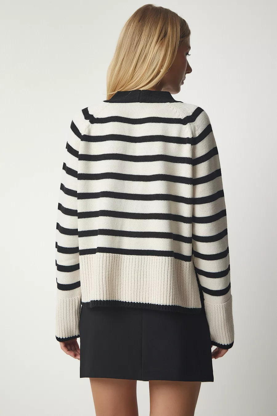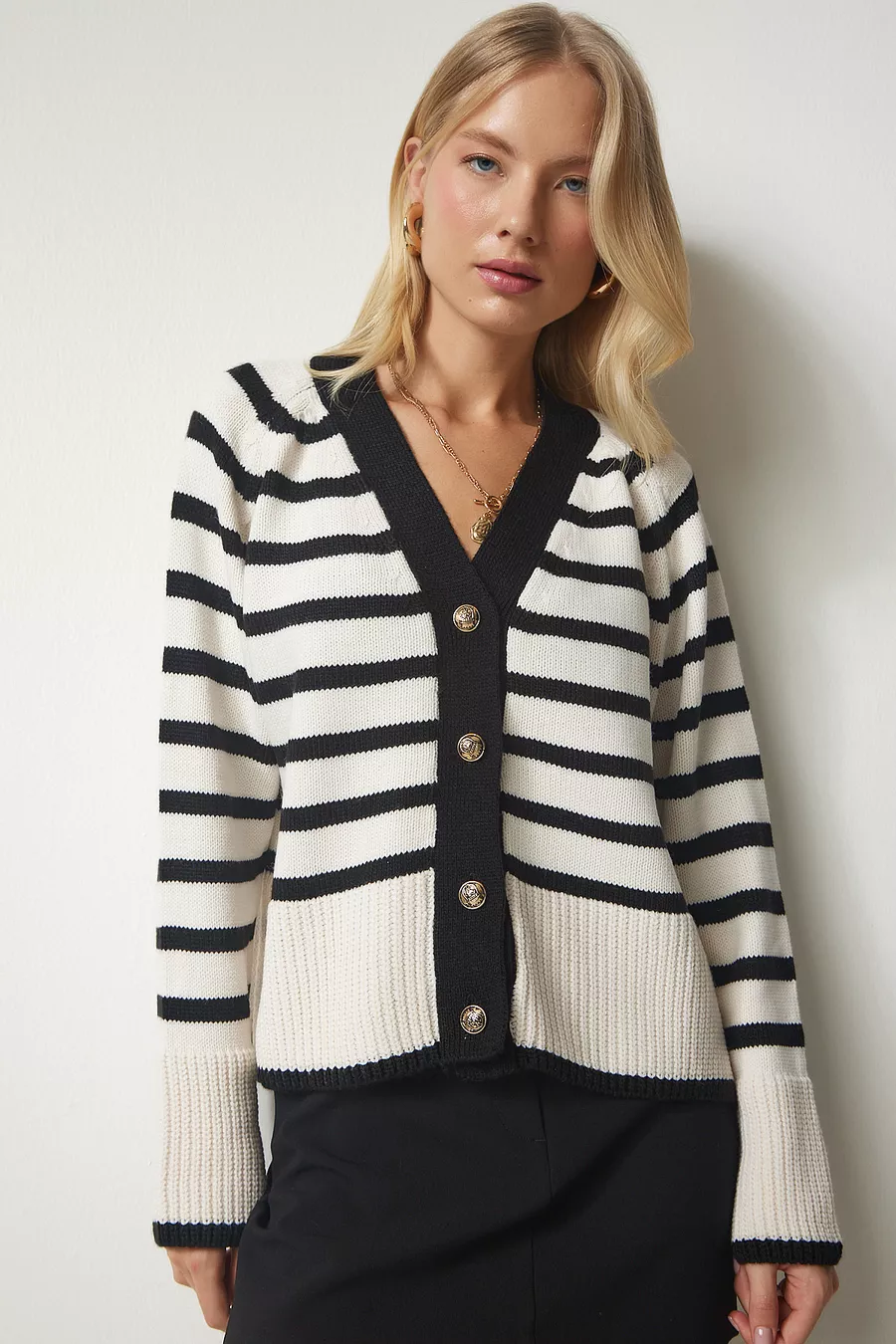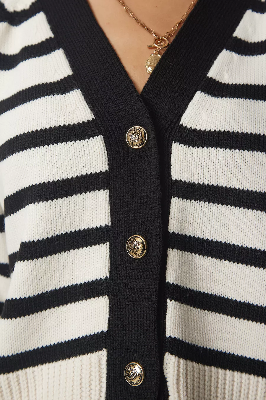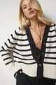 Damen Strickjacke mit Streifen und Metallknopf-Detail
