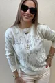 Damen Strickpullover mit Rundhals, Batikmuster, hellgrau mit Glitzerdetails, neuer Saison, elastisch und dehnbar