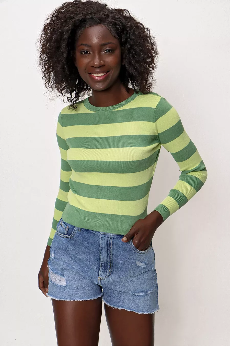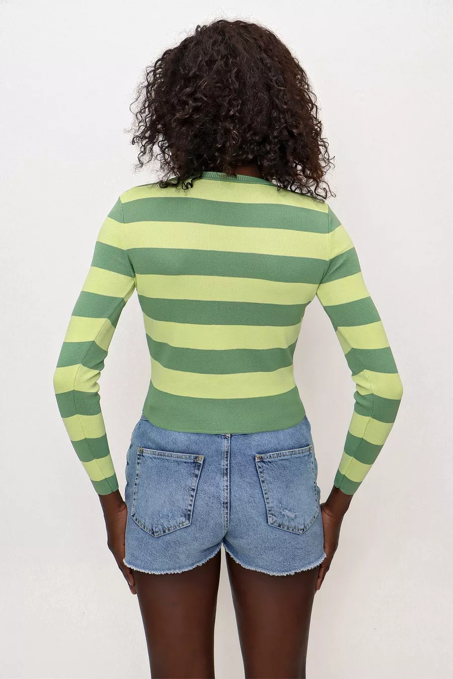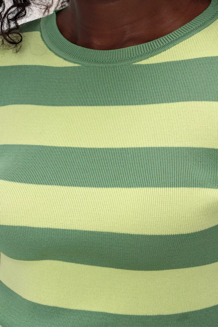 Damen Strickpullover mit Rundhalsausschnitt gestreift Grün-Limette