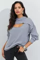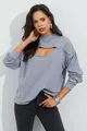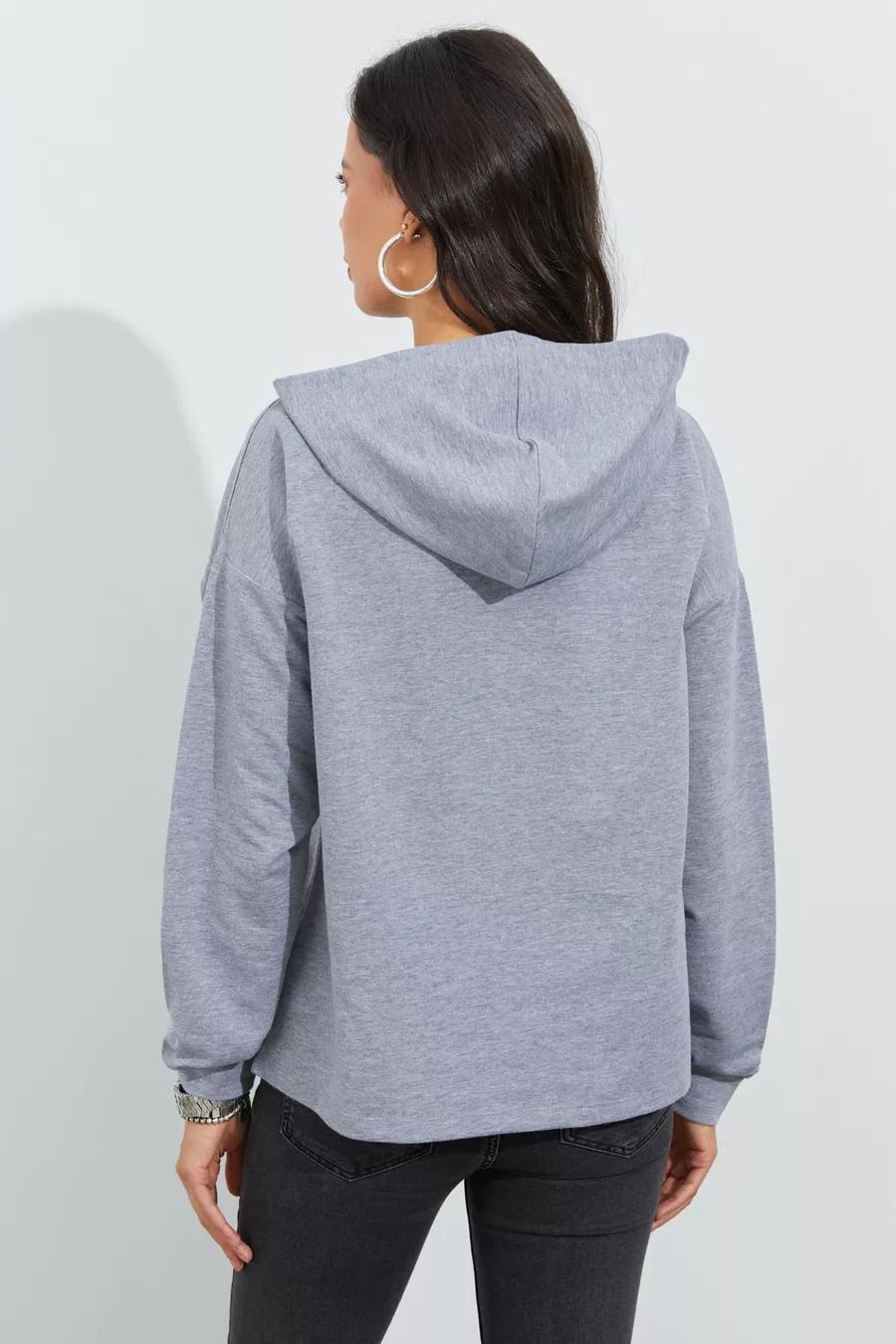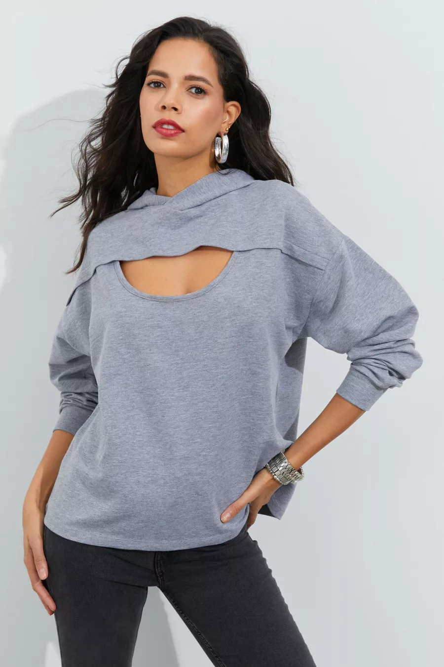 Damen Sweatshirt mit Kapuze, grau, Vorderseite mit Fenster