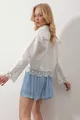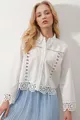 Damen Weißes Spitzenhemd mit Lochmuster Crop-Gewebe