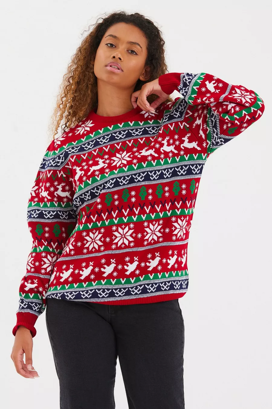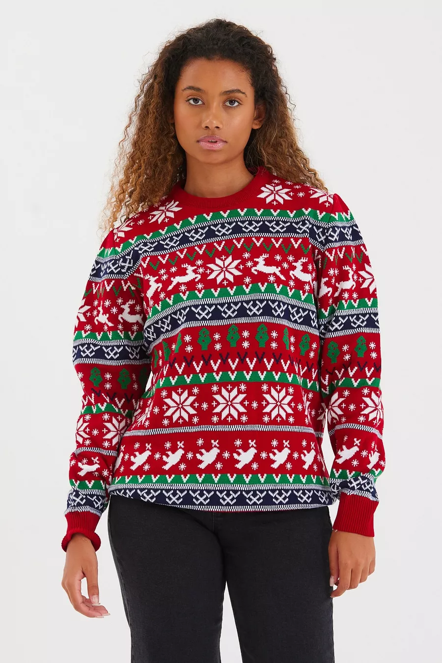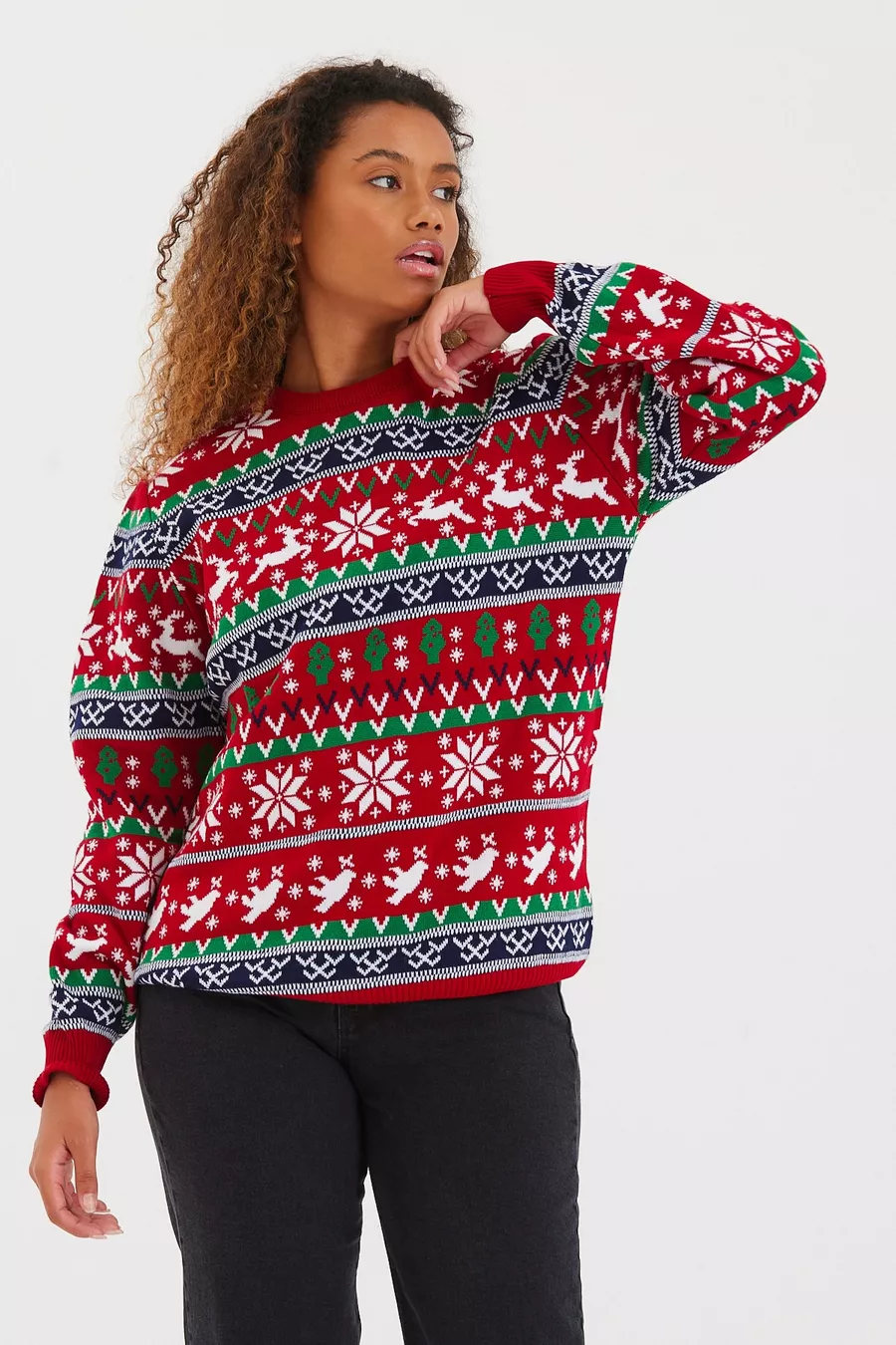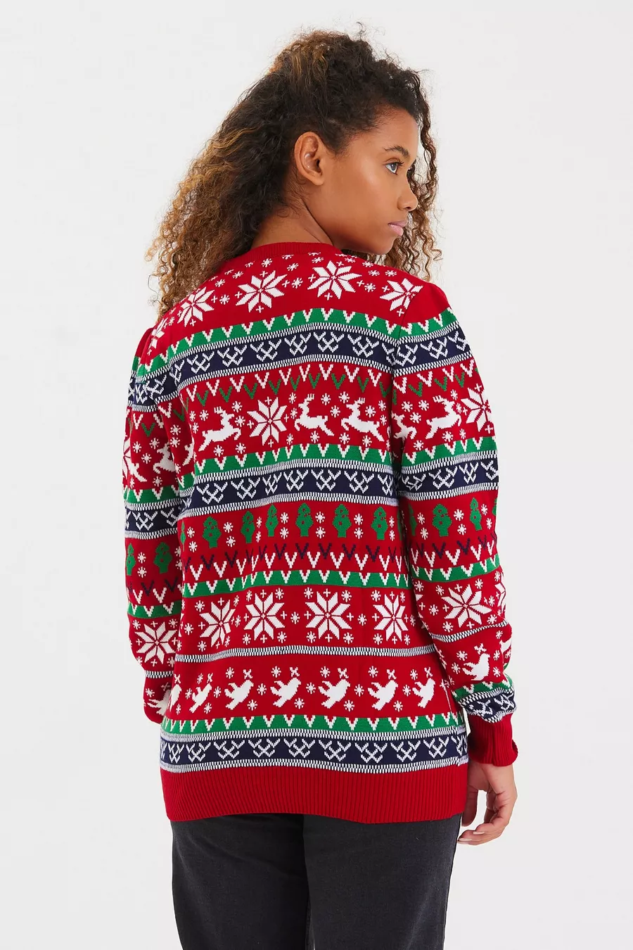 Damen Weihnachtsstrickpullover in Rot-Grün-Weiß