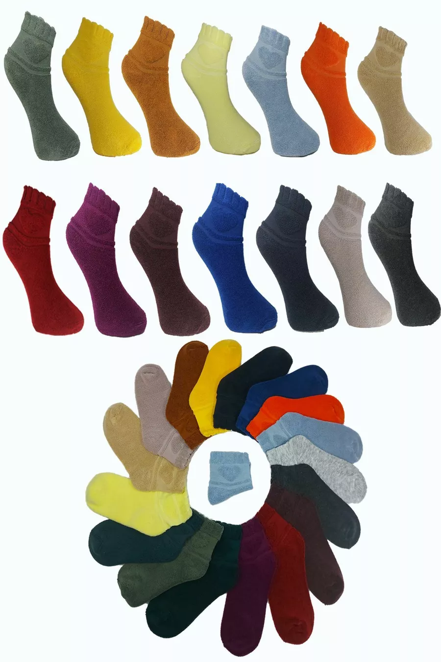 Damen Winter Bunte Bambus Herzmuster Handtuchsocken Set 4 Paar