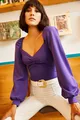 Damenbluse in Lila mit gerafften Vorderteil und Ballonärmeln