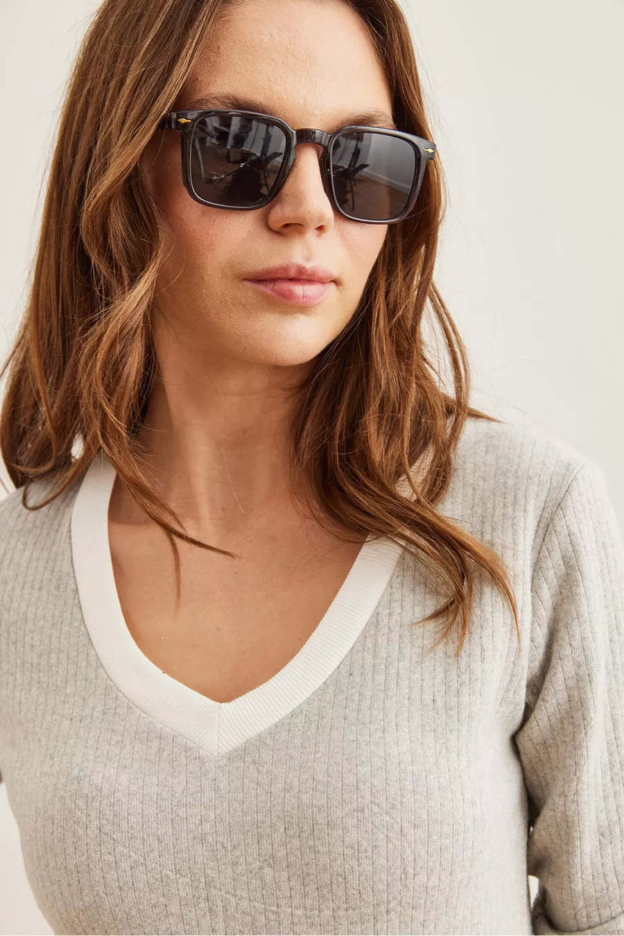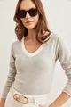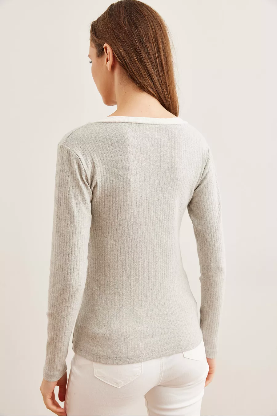 Damenbluse mit grau-weißem Kragen und Fleece-Stretch