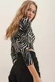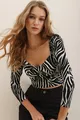 Damenbluse , ecrufarben mit Muster, Kusskragen, Prinzessärmeln, weiche Textur, kurz geschnitten