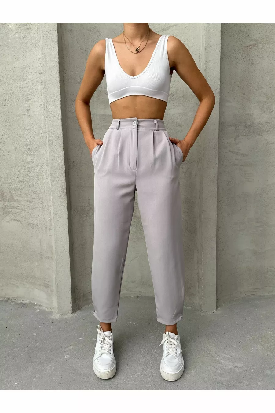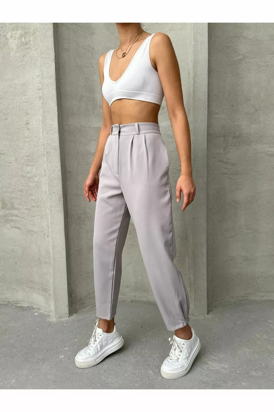 Material: Baumwolle Polyester Stoffart: Gewebe Beinabschluss: Bündchen Bund: Hoher Bund Muster: Uni Farbe: Grau Taschen: Doppelte Taschen Produktdetail: Mit Knöpfen Kollektion: Basic Dicke: Mittel Futter: Ohne Futter Länge: Lang Silhouette: Locker Anlass: Alltag Schnitt: Plissiert Weitere Eigenschaften: Keine weiteren Eigenschaften Webart: Leinwandbindung Persona: Cool & Comfort Druck-/Sticktechnik: Ohne Druck Gürtelstatus: Ohne Gürtel Nachhaltigkeitsdetails: Ja Materialzusammensetzung: 50% Polyester, 50% Baumwolle Pflegehinweis: Typ 7 Herkunft: TR