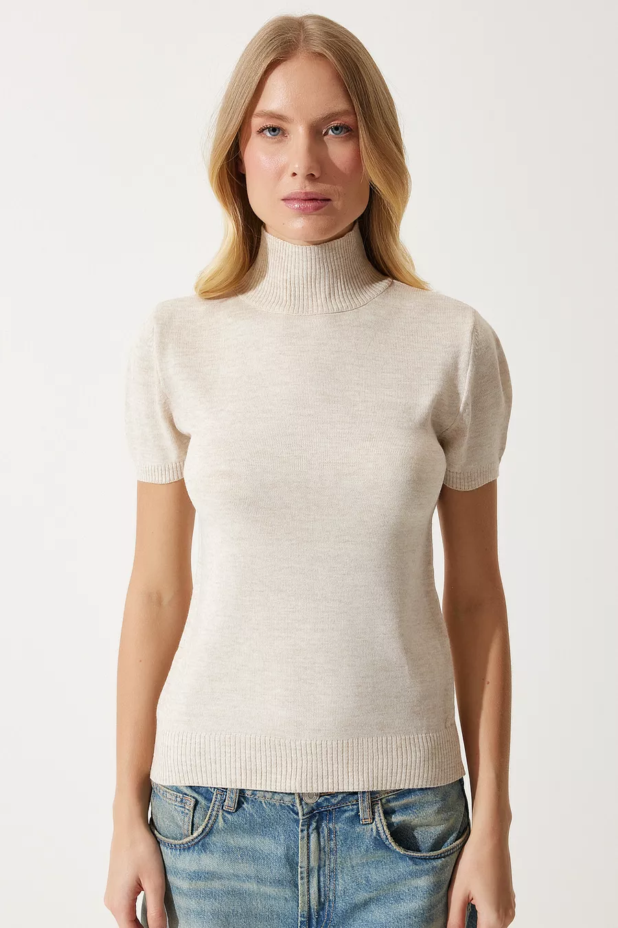Damenpullover mit Rundhalsausschnitt und kurzen Ärmeln
