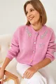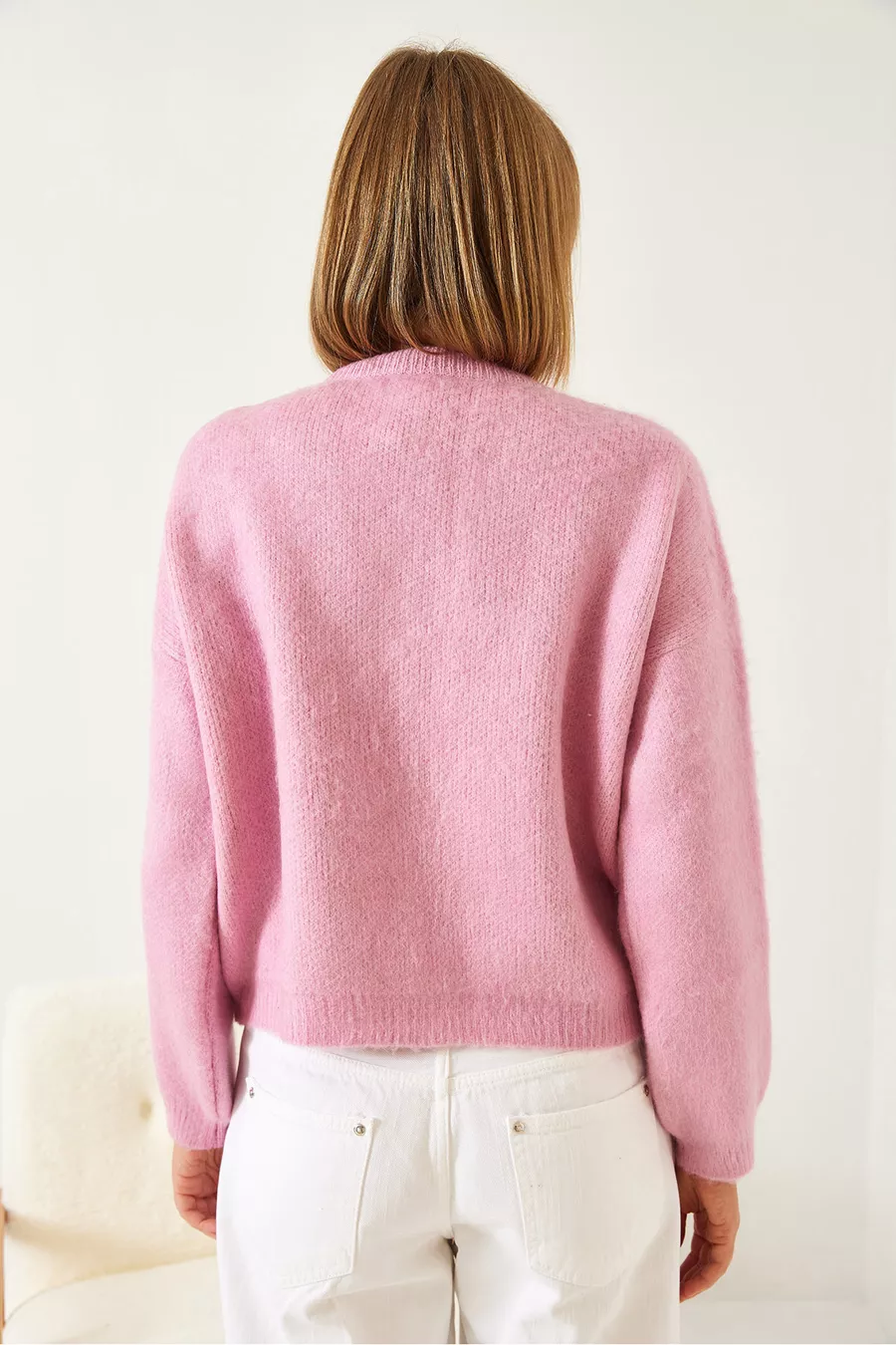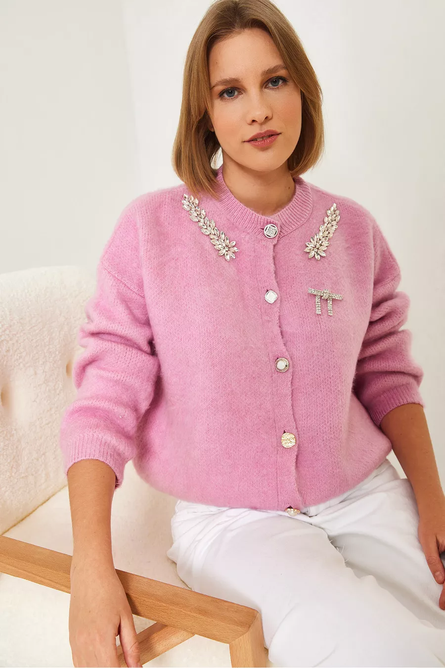 Material: Acryl - Polyester Ärmelltyp: Standardärmel Muster: Uni Schnitt: Regular Stoffart: Strick Farbe: Rosa Kragenart: Rundhals Produktdetail: Mit Schnalle Produkttyp: Gefüttert Tasche: Ohne Tasche Ärmellänge: Lang Kollektion: Glam Dicke: Dick Länge: Standard Silhouette: Basic Anlass: Trend Zusatzfunktion: Gerade geschnitten Druck-/Sticktechnik: Aufgeklebte Steine Verschlussart: Knopf Anzahl der Teile: 1 Persona: Fashion Forward Nachhaltigkeitsdetail: Nein Webart: Strickoptik Gürtel-/Taillenzustand: Ohne Gürtel Materialzusammensetzung: 75% Acryl, 20% Polyester, 5% Elasthan Waschanleitung: T02 Saison: Winter Herkunft: TR Verpackungszustand: Keine Verpackung