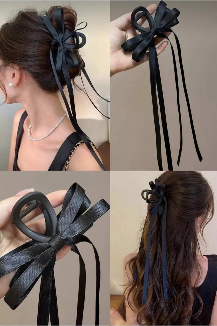 Damenspange, schwarzer Schleifenschwanz, Wäscheklammer-Verschluss