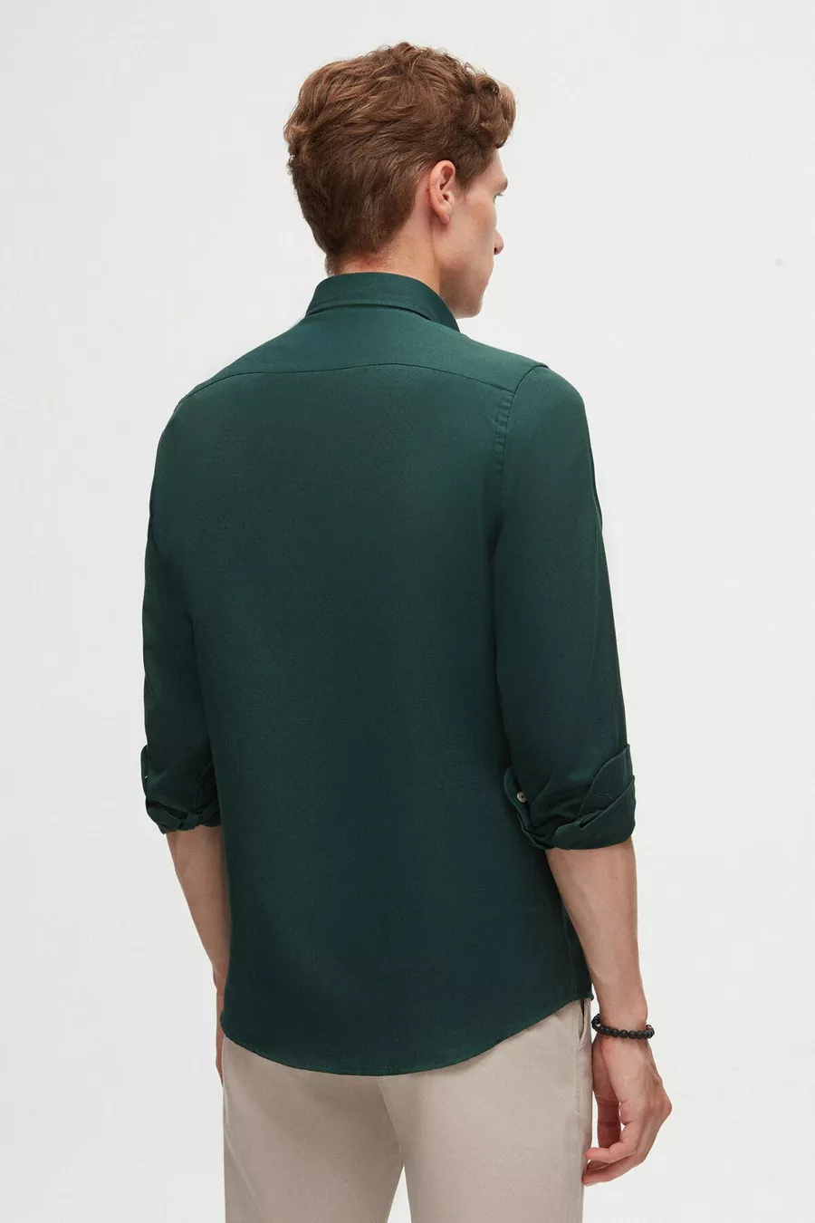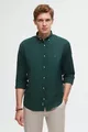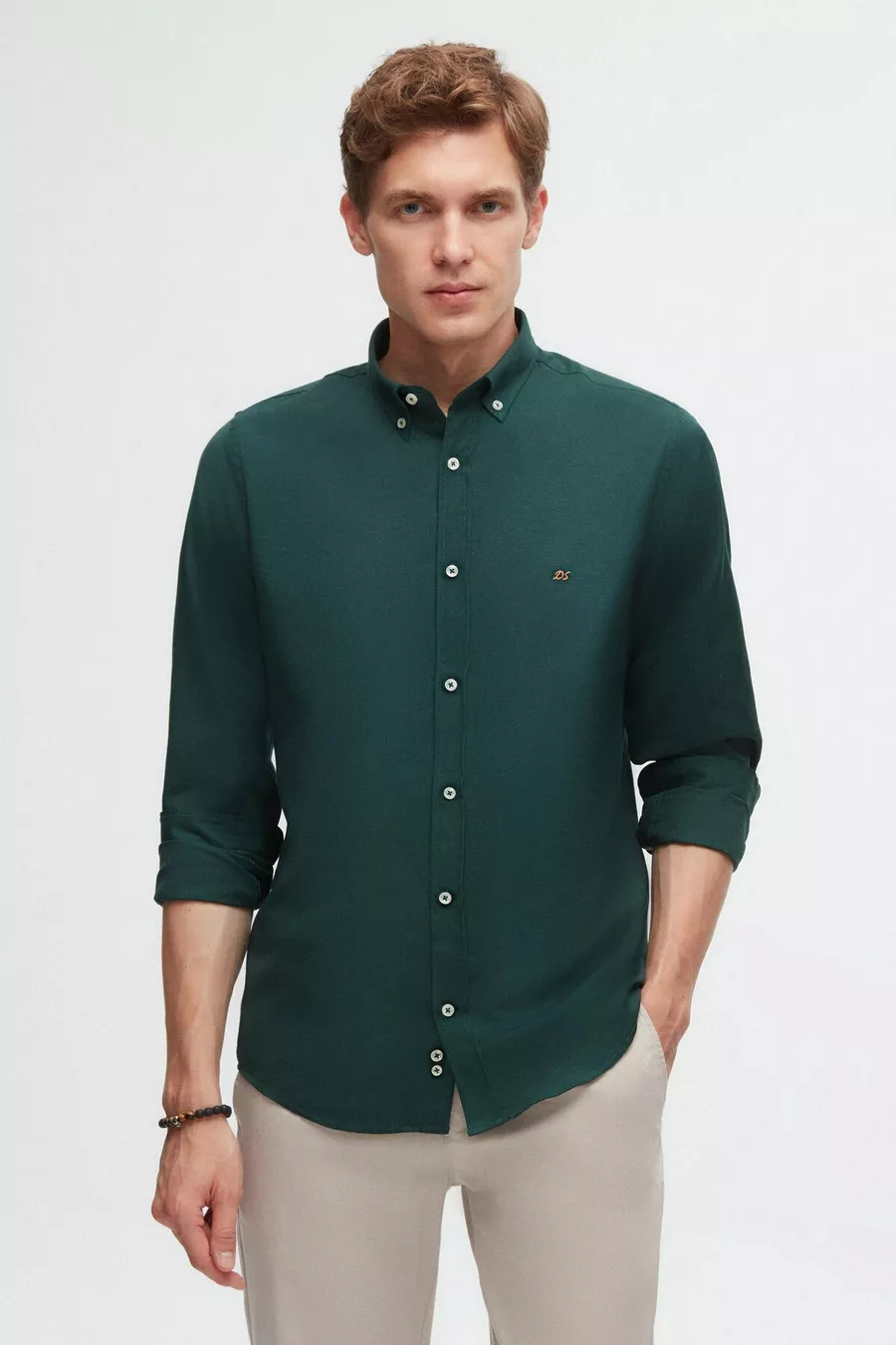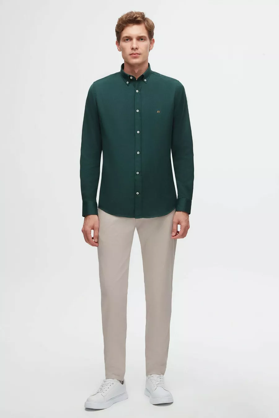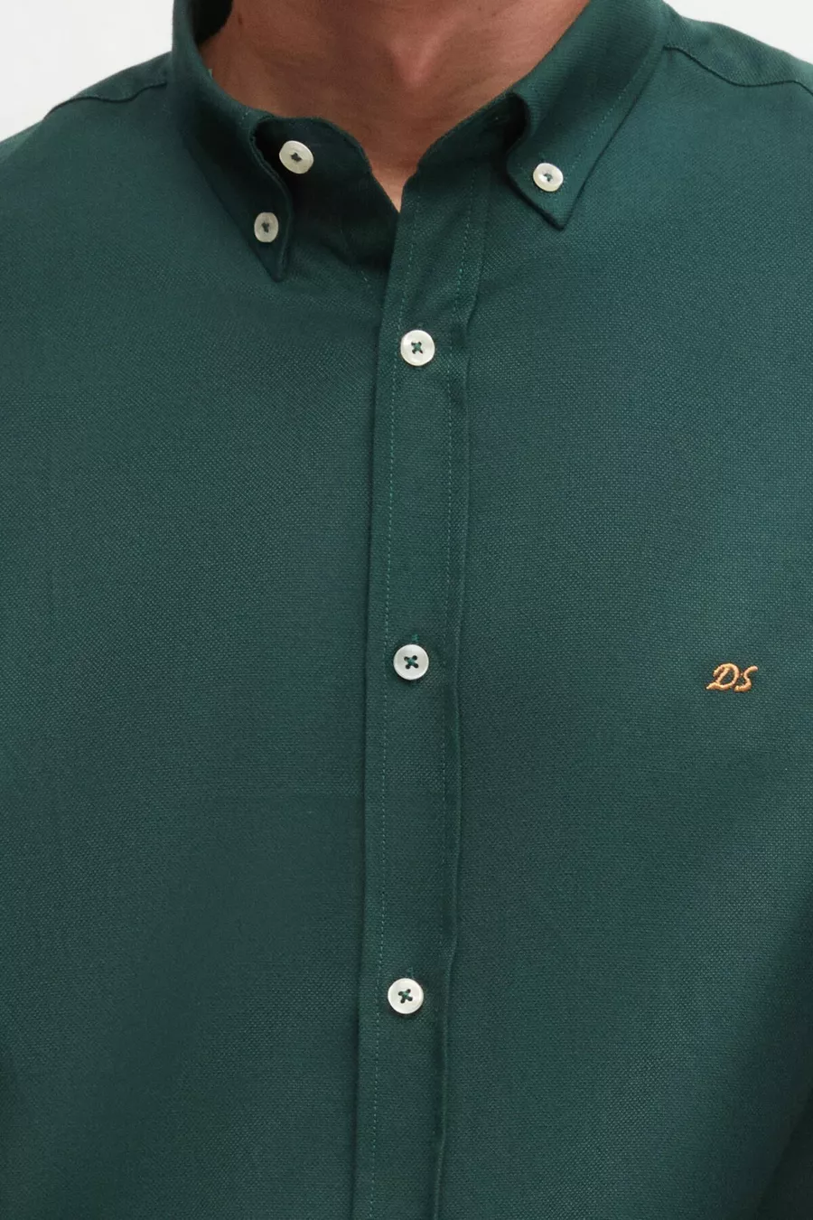 Das Damat Slim Fit grüne Oxford-Hemd mit Knopfleiste, leicht zu bügeln, mit Stickereien, aus Baumwolle