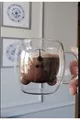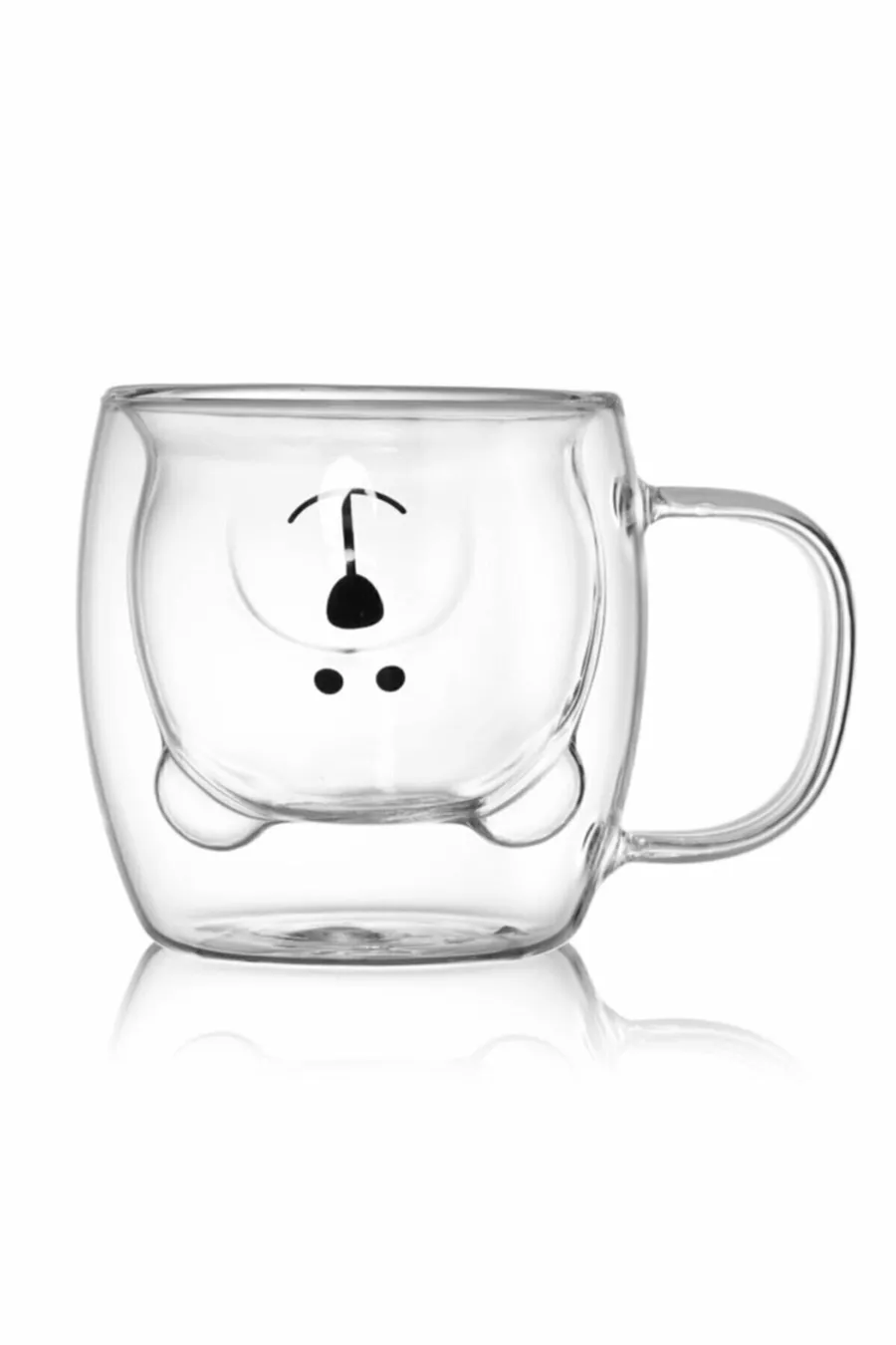 Doppelwandiger Glasbecher mit Teddybär-Design, Doppelwandiger Glasbecher mit Henkel, Spaßbecher