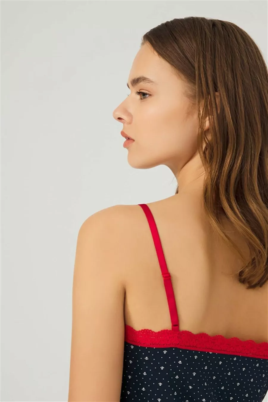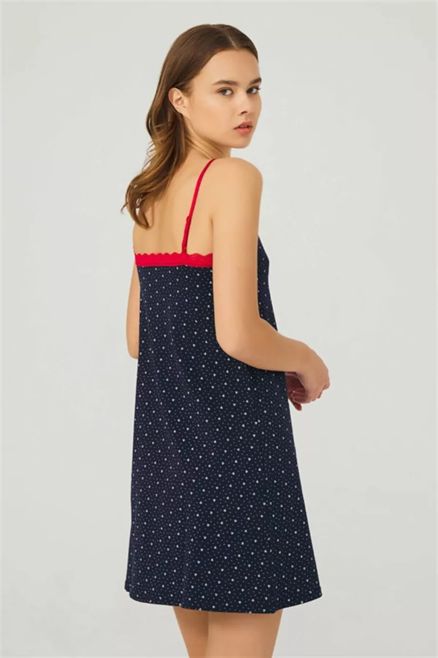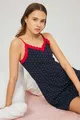 Dunkelblaue, gemusterte, dünne Träger Nachtwäsche aus Baumwolle für Damen