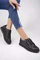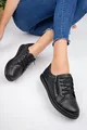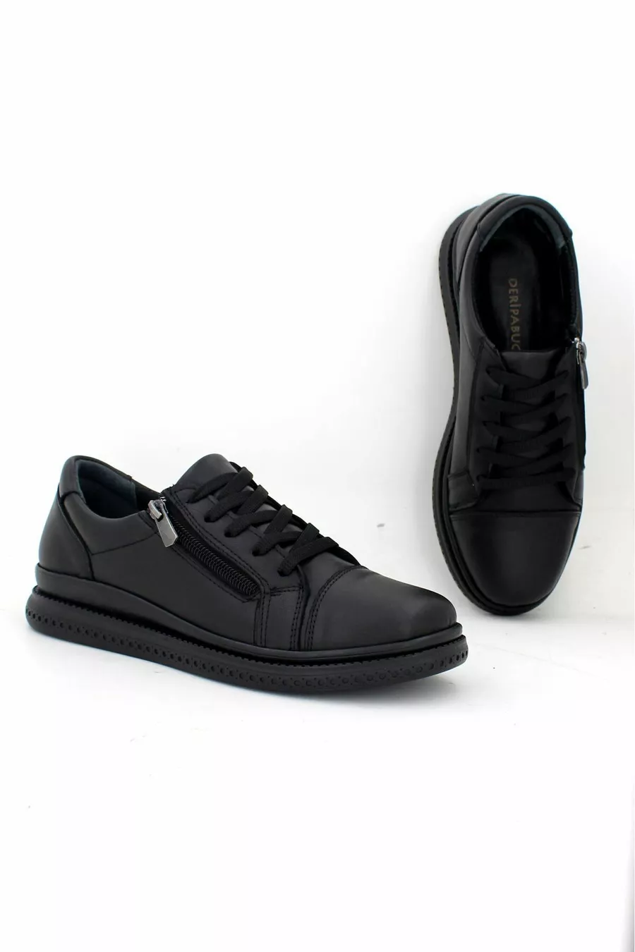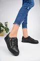 Echtes Leder Schwarz Frauen Anatomisches Leder Freizeitschuhe