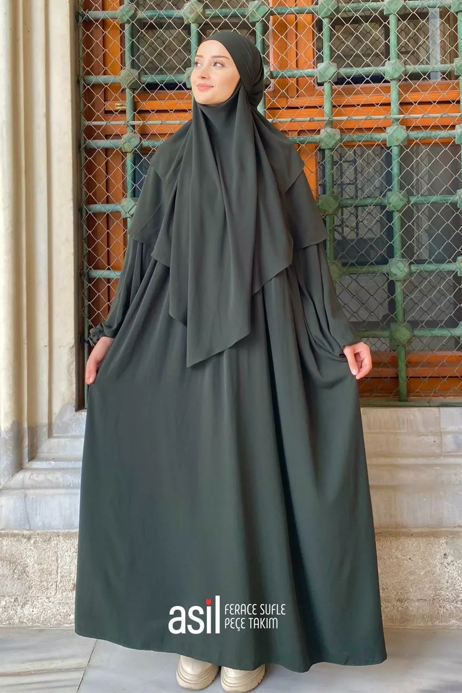 Edles Ferace Spitzen-Schleier Set Khaki (DREITEILIGES SET)
