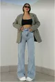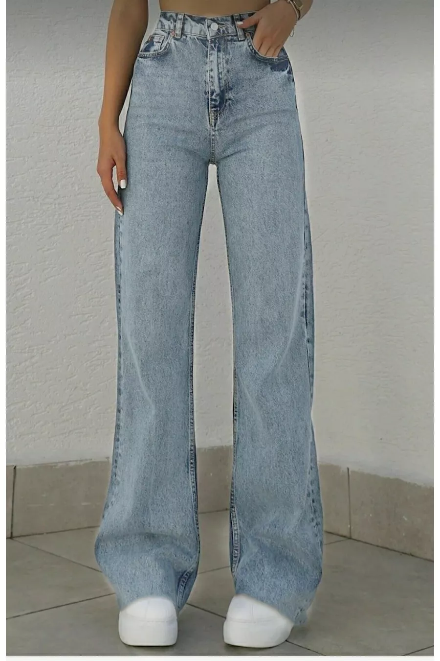 Edna Gold Ikon er Hellblau Schnee Stretch Super Extra Hohe Taille Palazzo Lässige Jeanshose