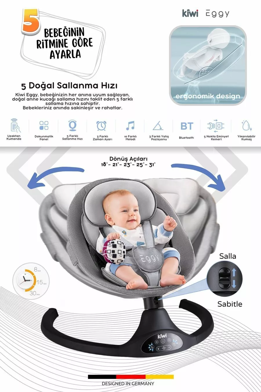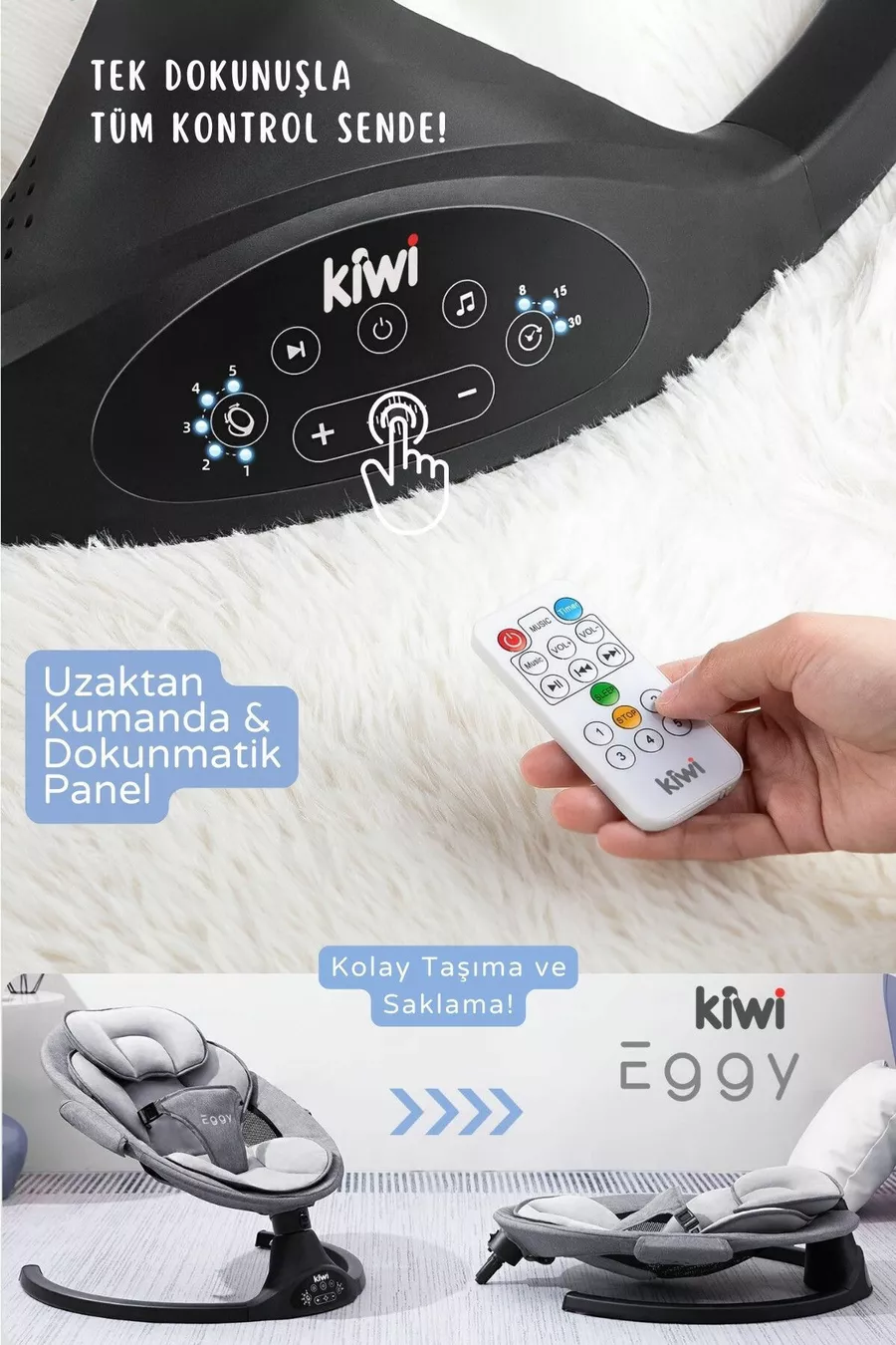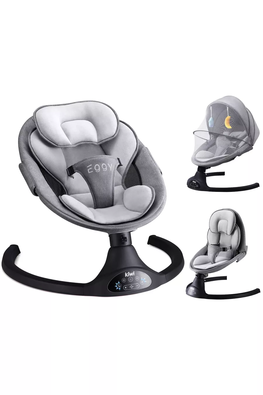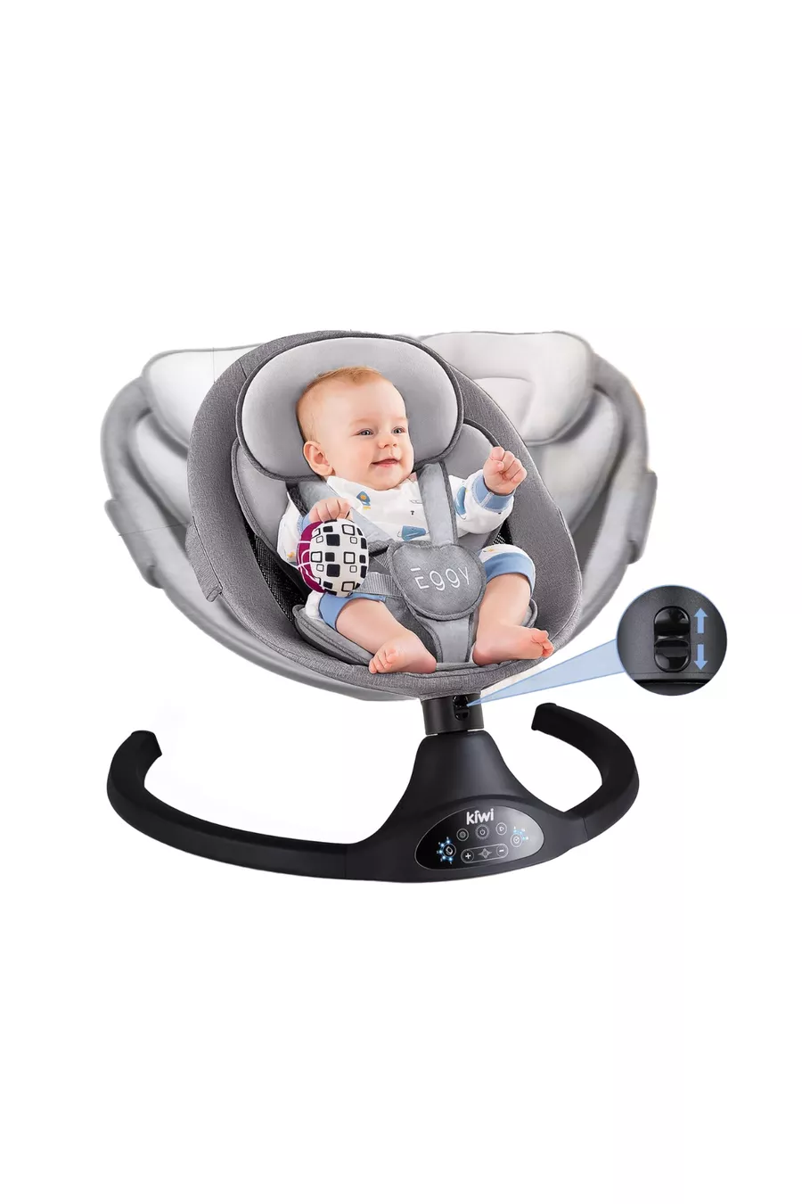 Eggy Plus Elektrische Automatische Wiegeschaukel für Babysitz, 5 verschiedene Wiegegeschwindigkeiten, mit Spielzeug, Anthrazit