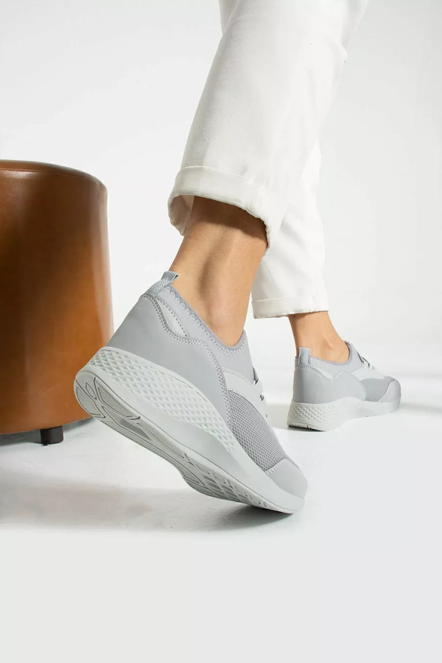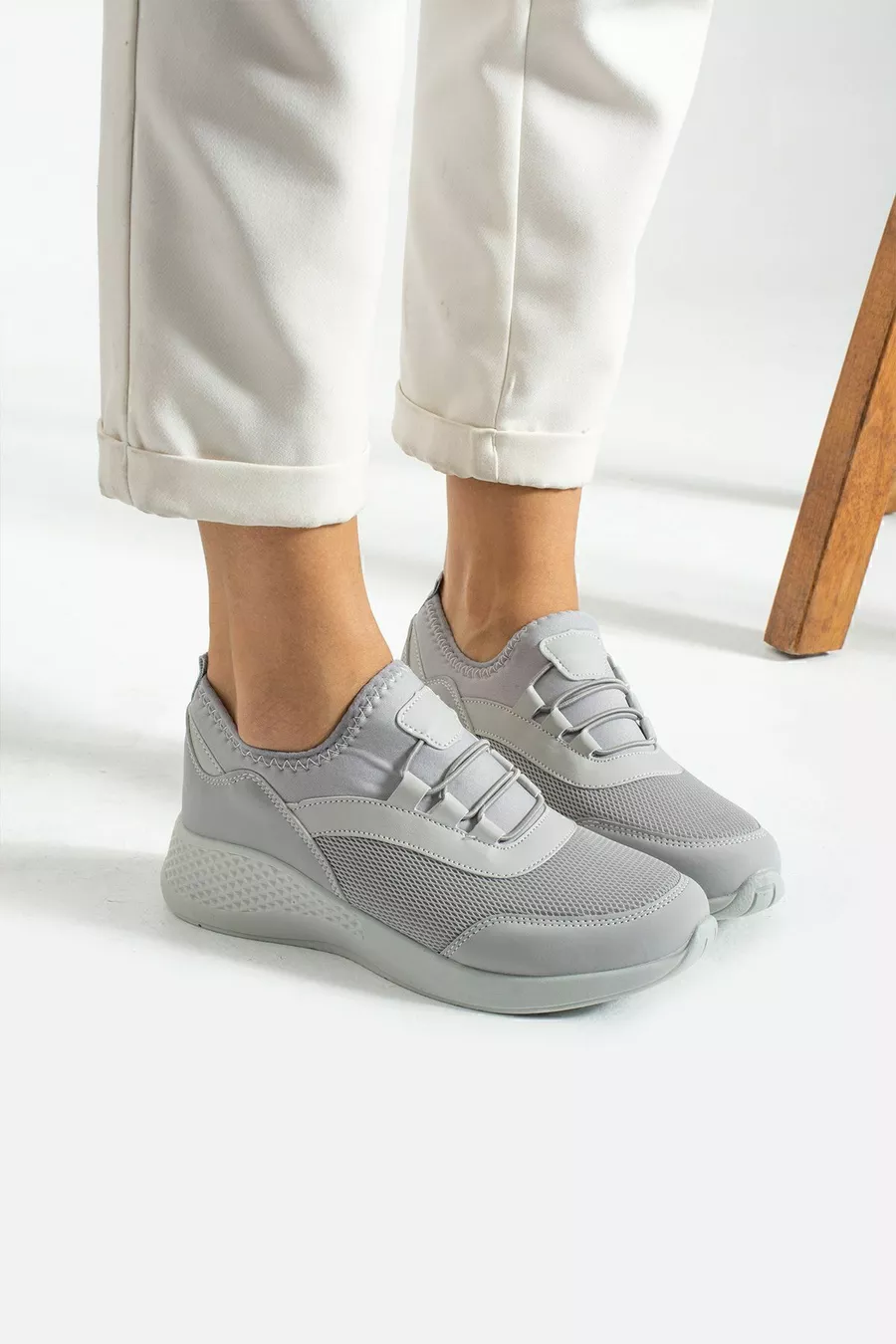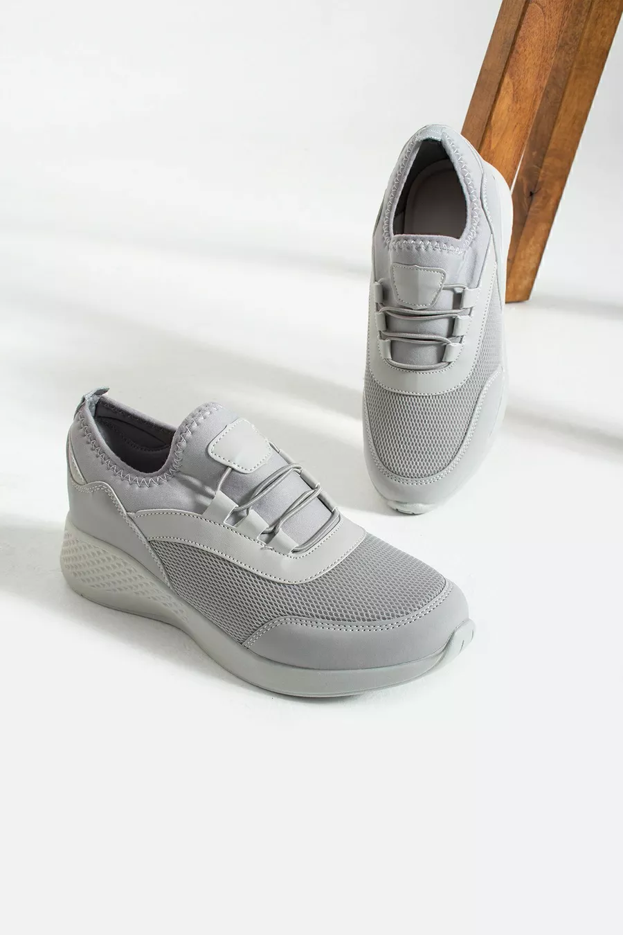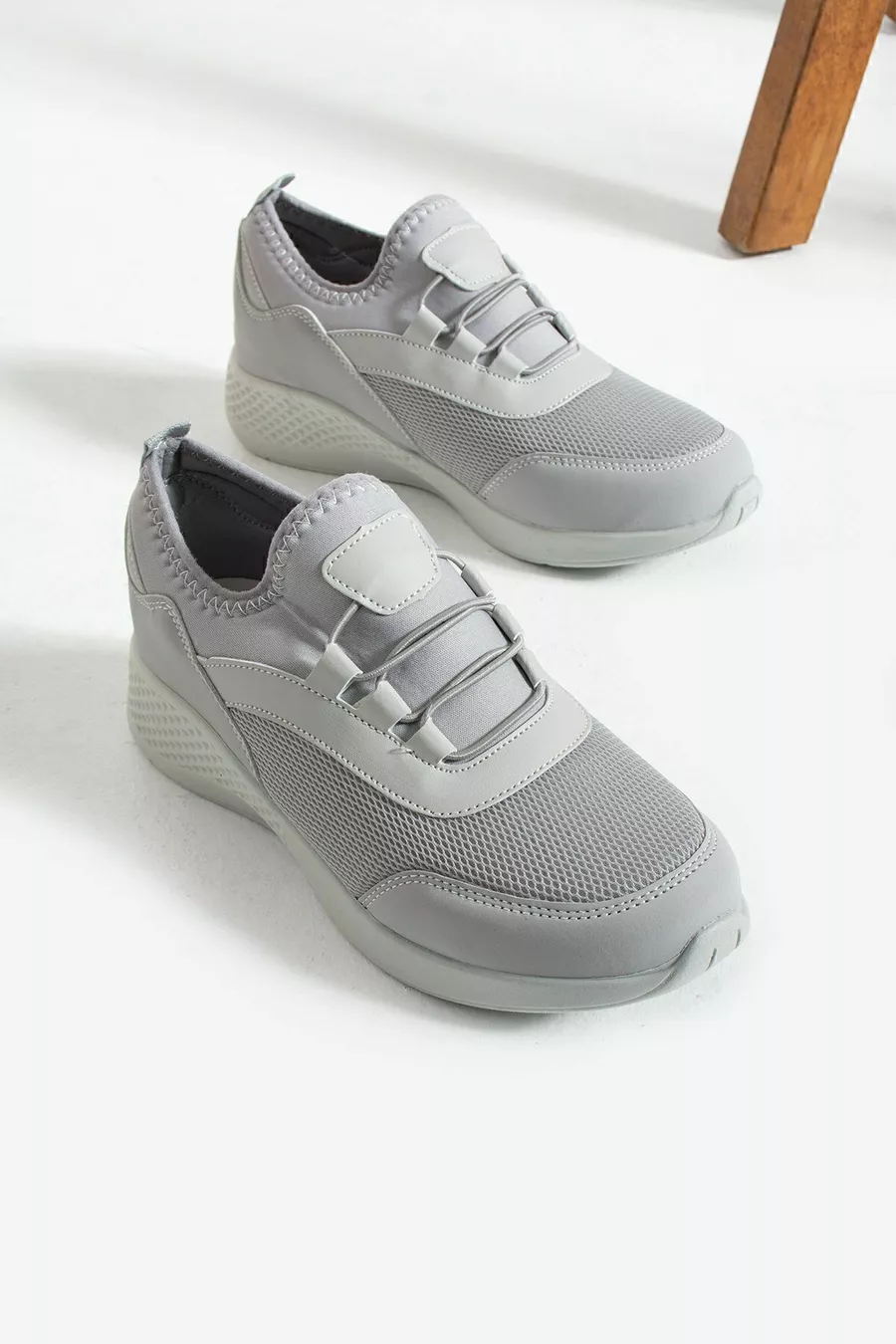 Eisgraue, anatomisch geformte, flexible Slip-on-Sportschuhe für den Alltag