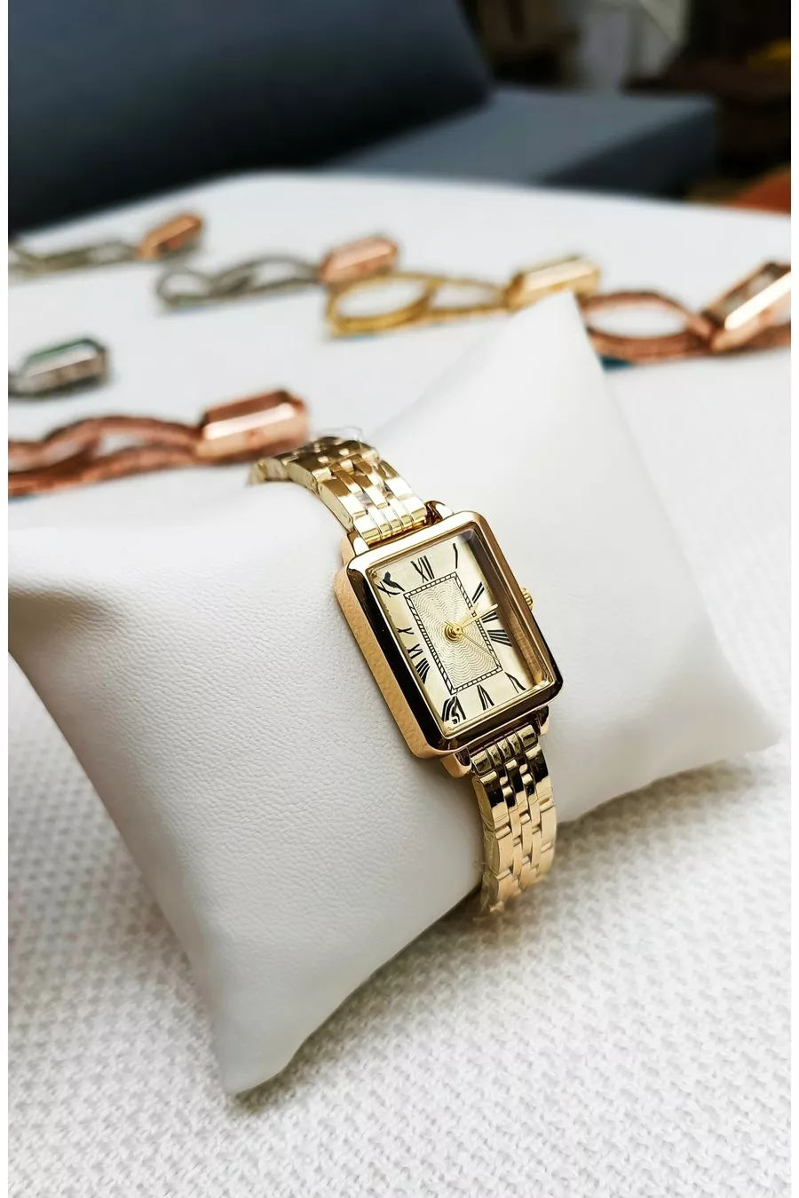 Gehäusedurchmesser: 20-25 mm Gehäusefarbe: Roségold Gehäusematerial: Stahl Armbandfarbe: Gold Armbandmaterial: Stahl Wasserdichtigkeit: 3 ATM Zusatzfunktionen: Wasserdicht Glasart: Glas Uhrwerk: Quarz Glasform: Flach Garantiezeit: 2 Jahre Farbe: Gold Eigenschaft: Lang