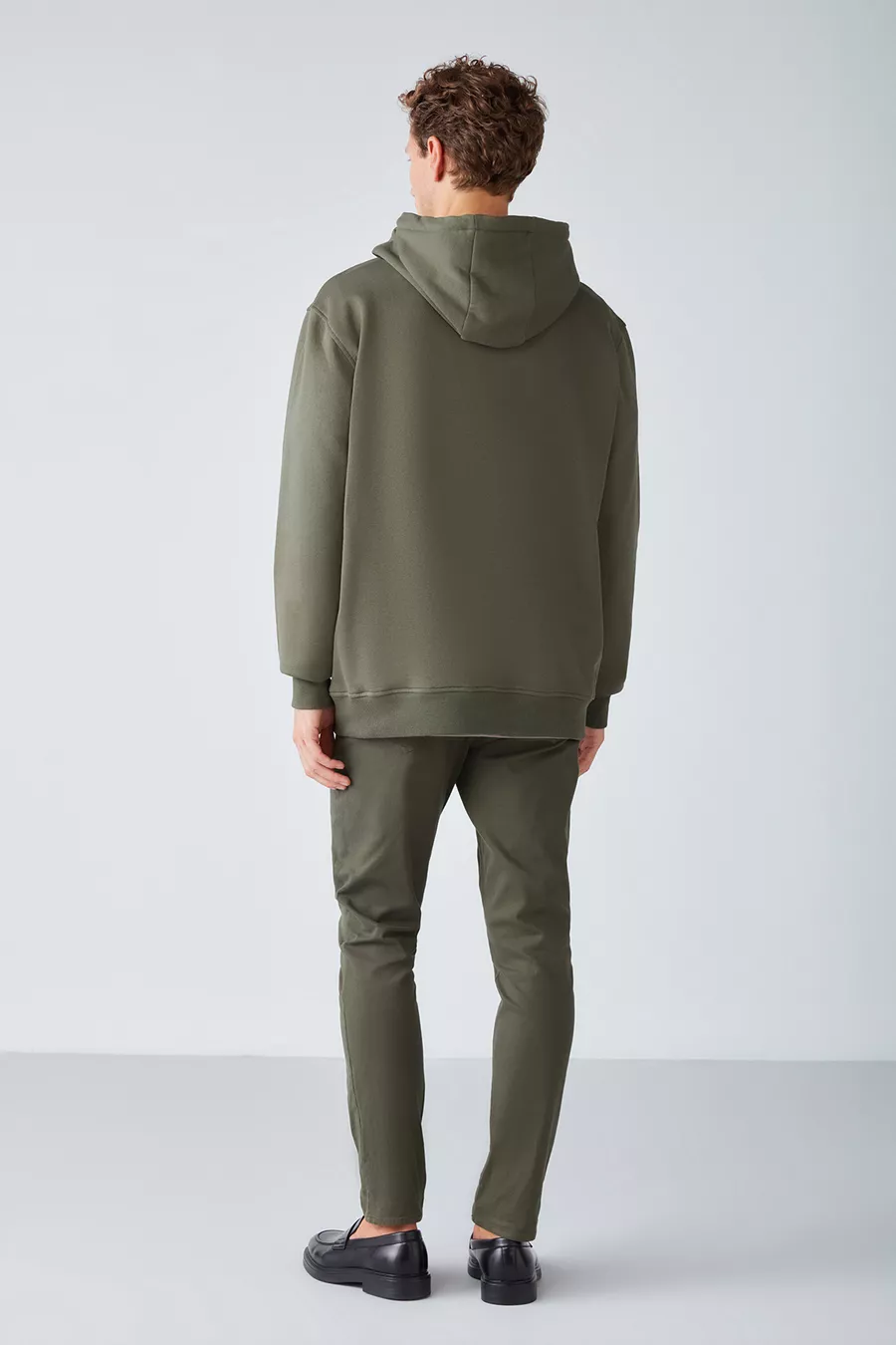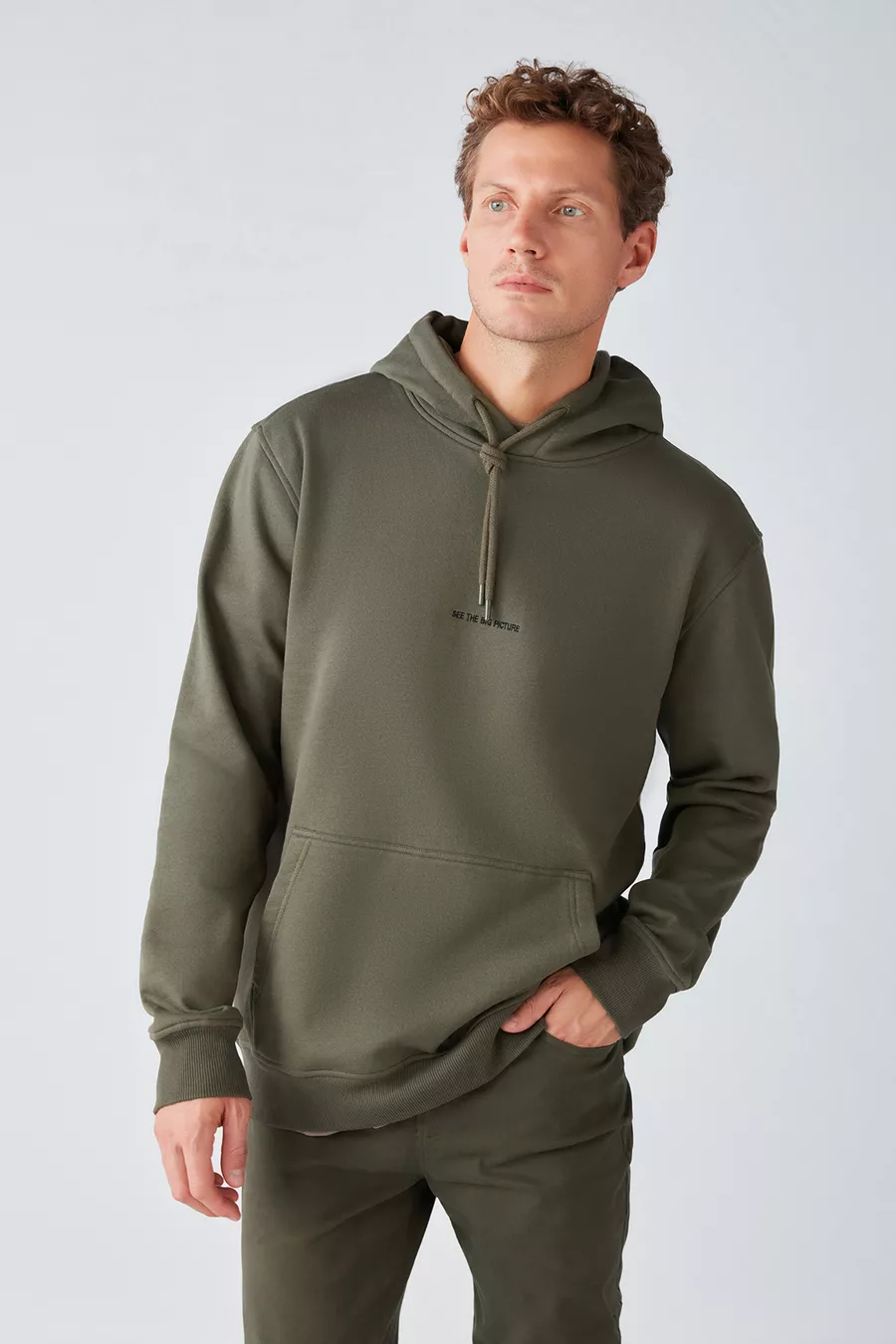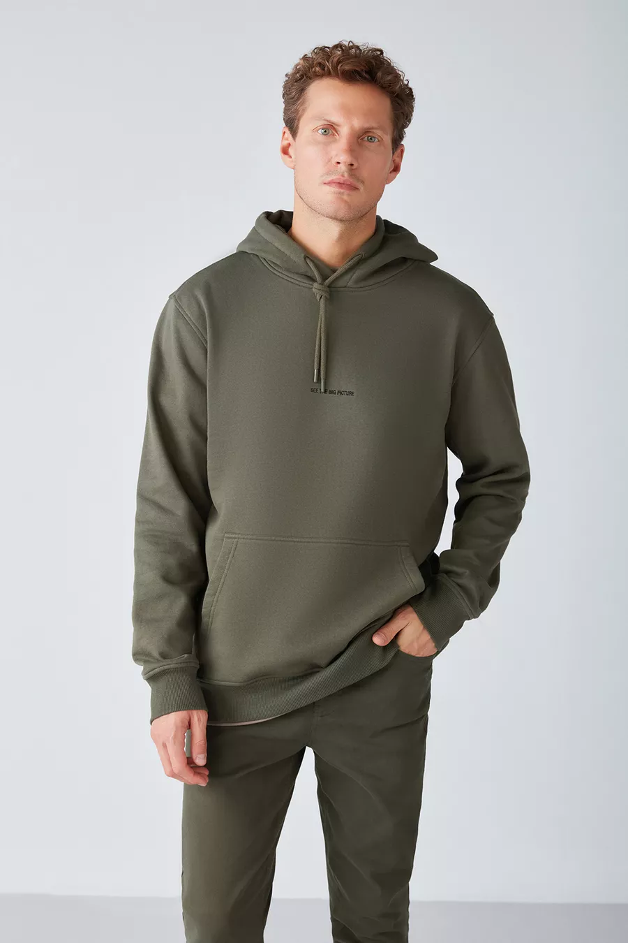 Epic Herren Sweatshirt mit Kapuze, Kordelzug, Regular Fit, gesticktem Logo, hellolivfarben aus weichem Stoff