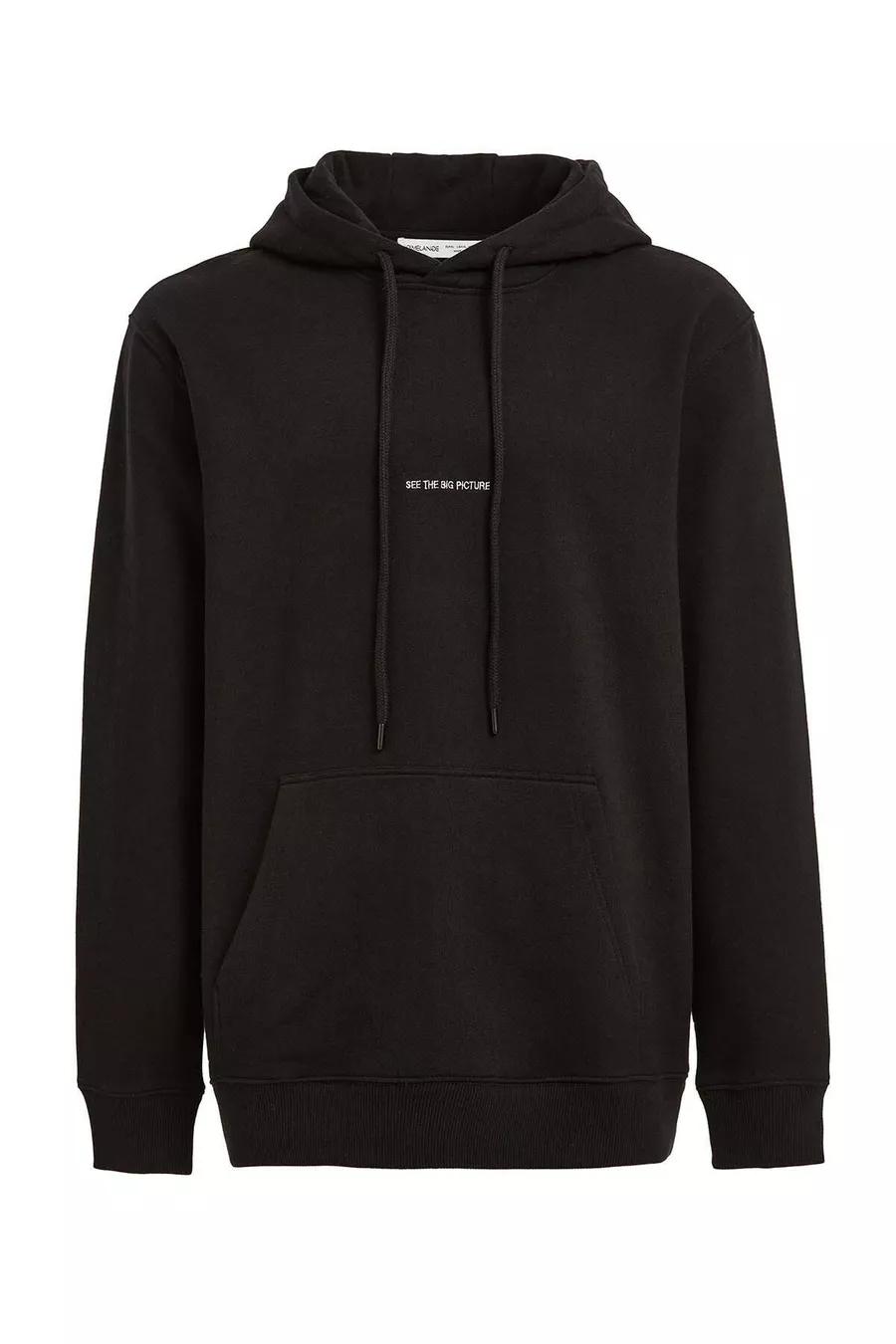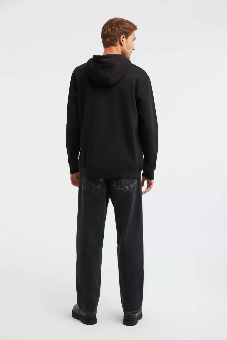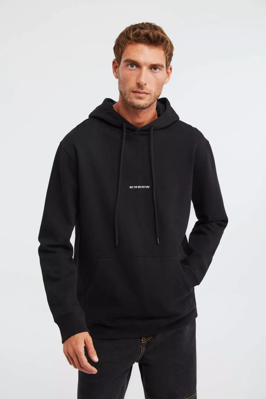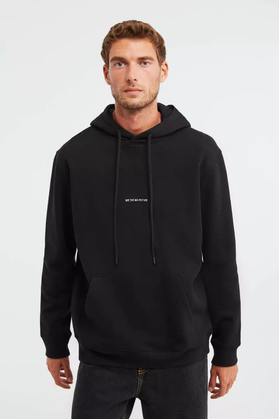 Epic Herren Sweatshirt mit Kapuze aus weich offenem Stoff, Kordelzug, Regular Fit, bestickt, schwarz
