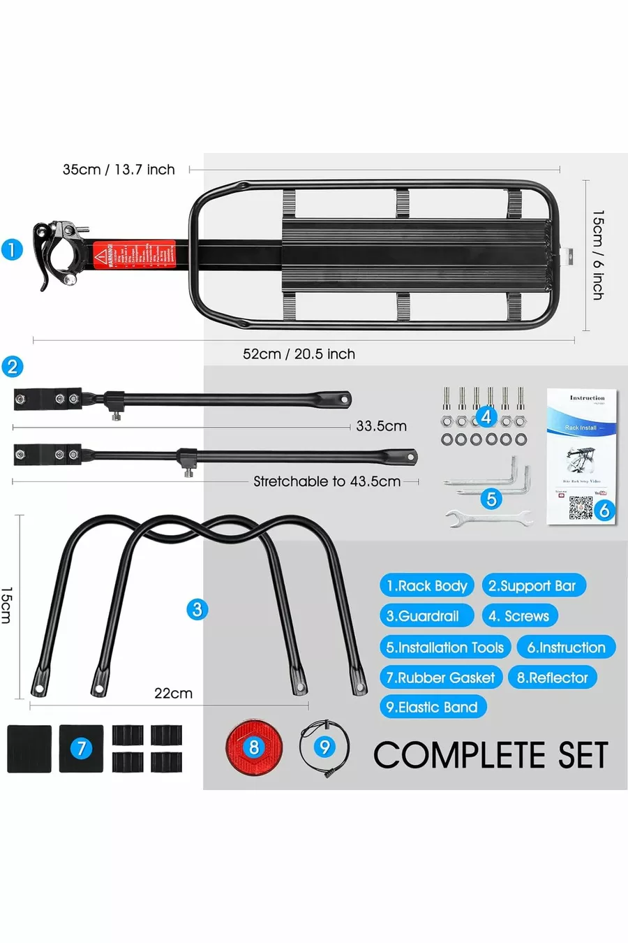 Fahrrad Aluminium Hintergepäckträger mit Sattelstützenanschluss, Hintergepäckträger mit Reflektor am Sattel
