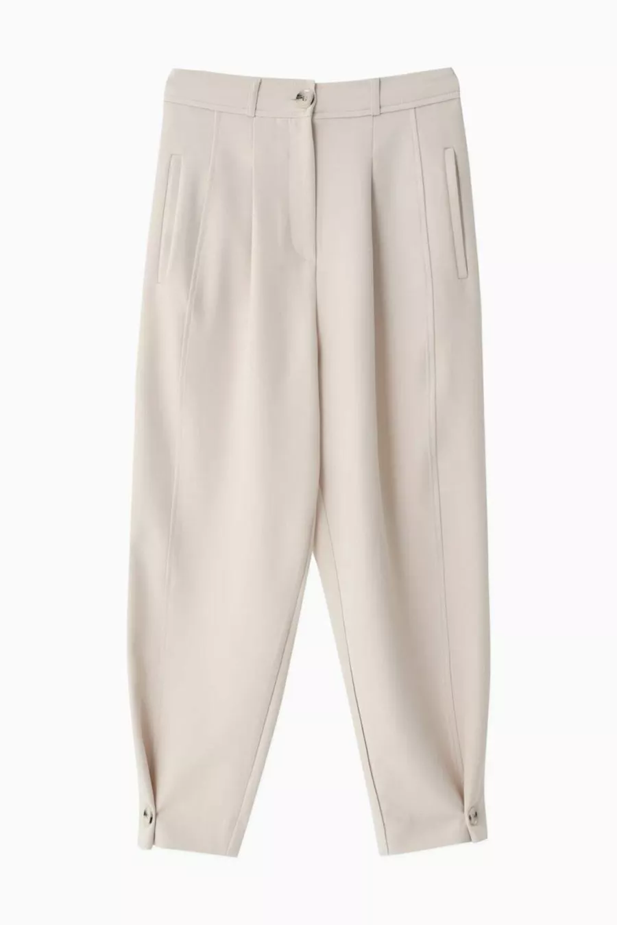 Faltenhose mit schicken Knopfdetails, Karottenform, Beige
