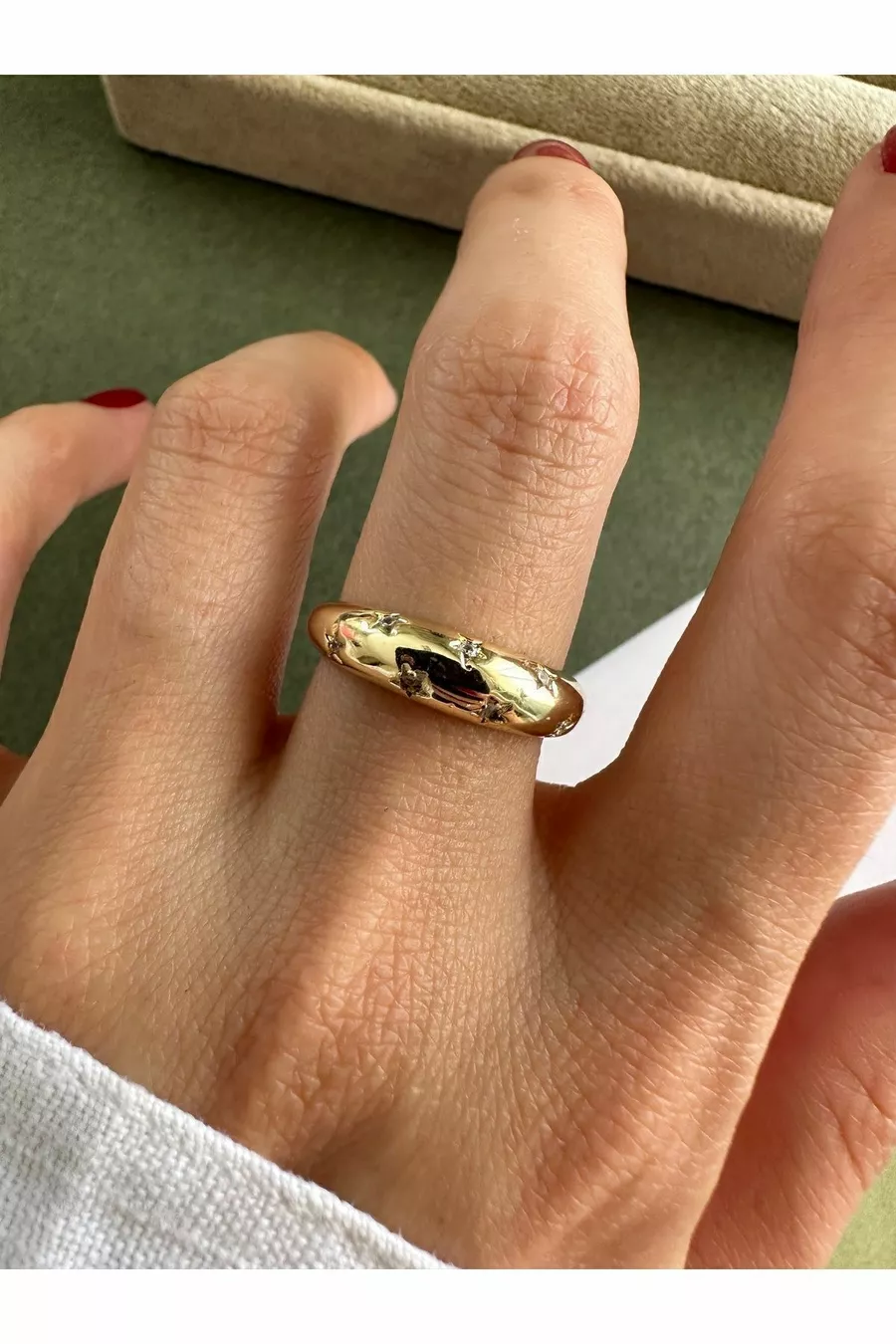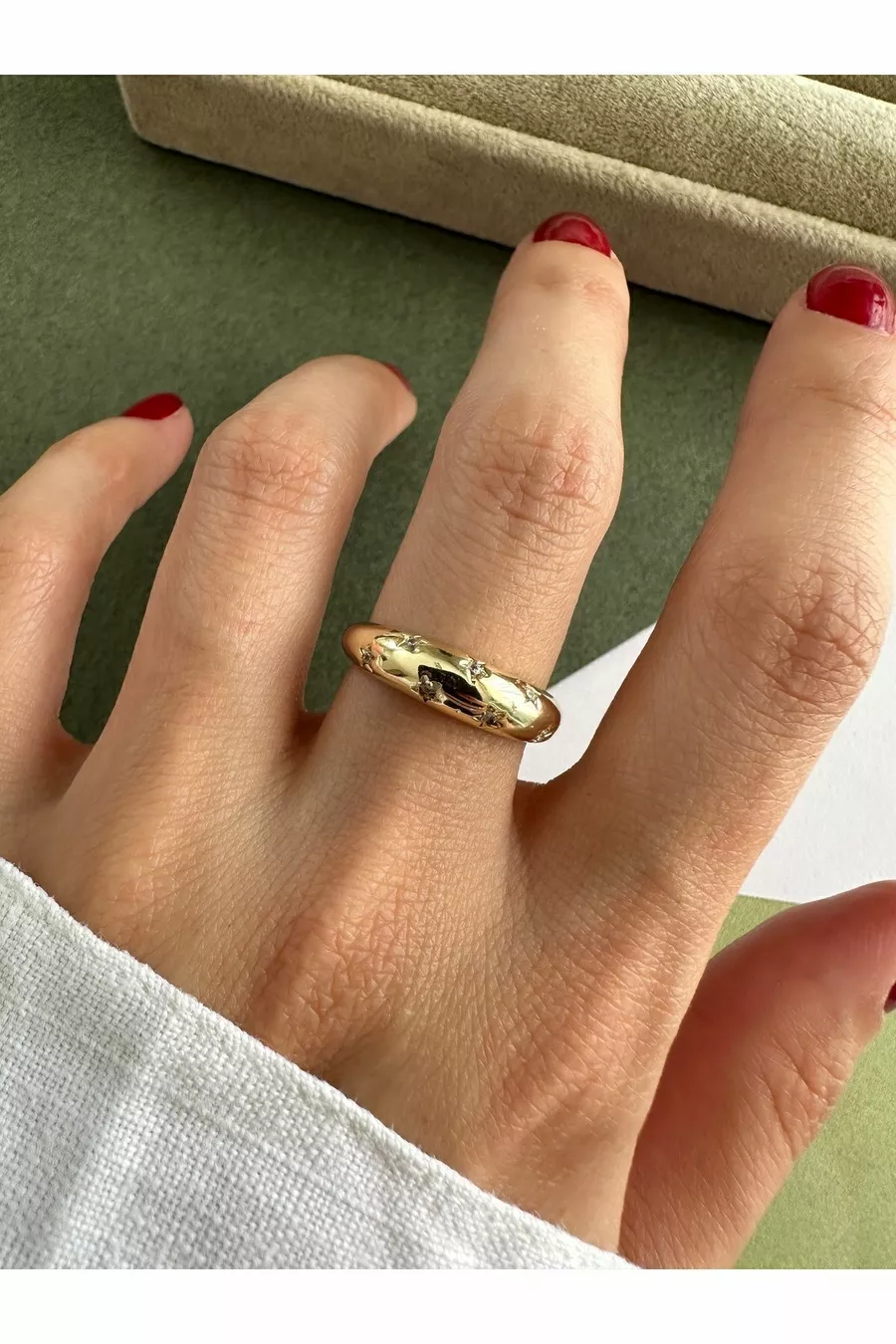 Feiner gewölbter Ring mit Goldstern-Motiv