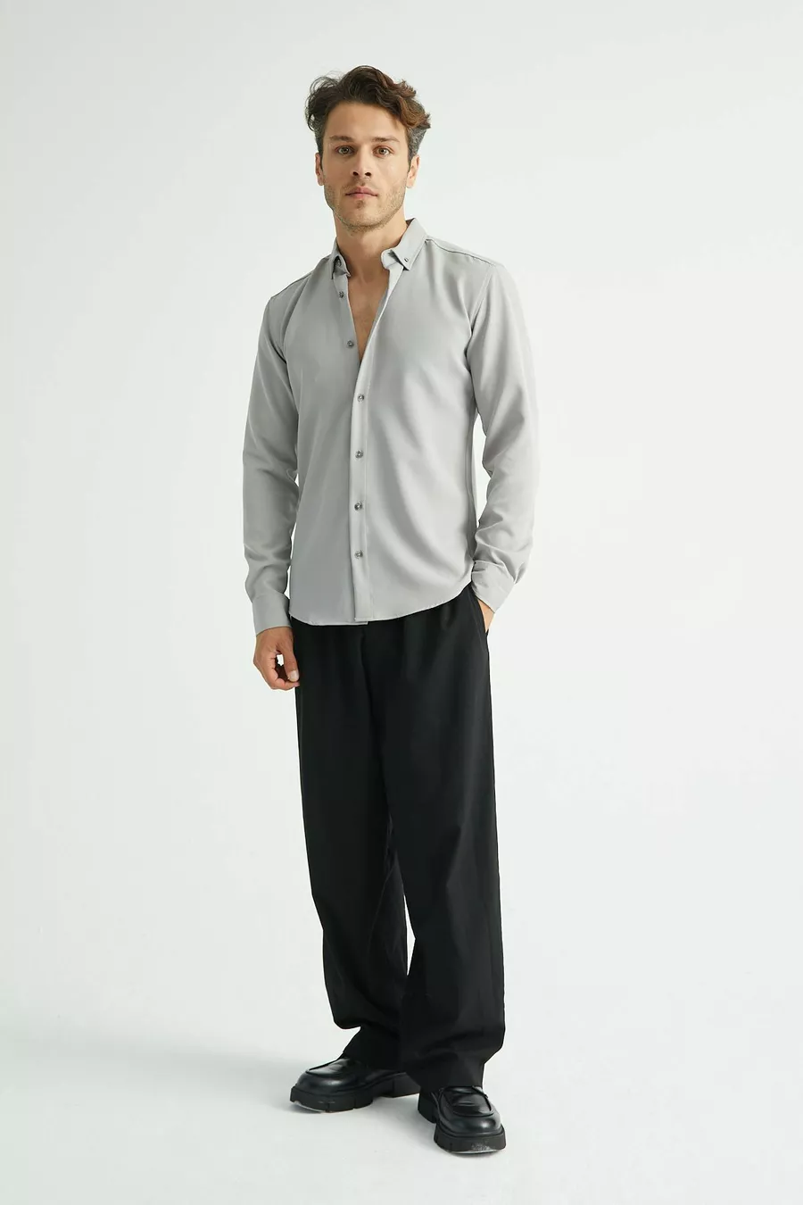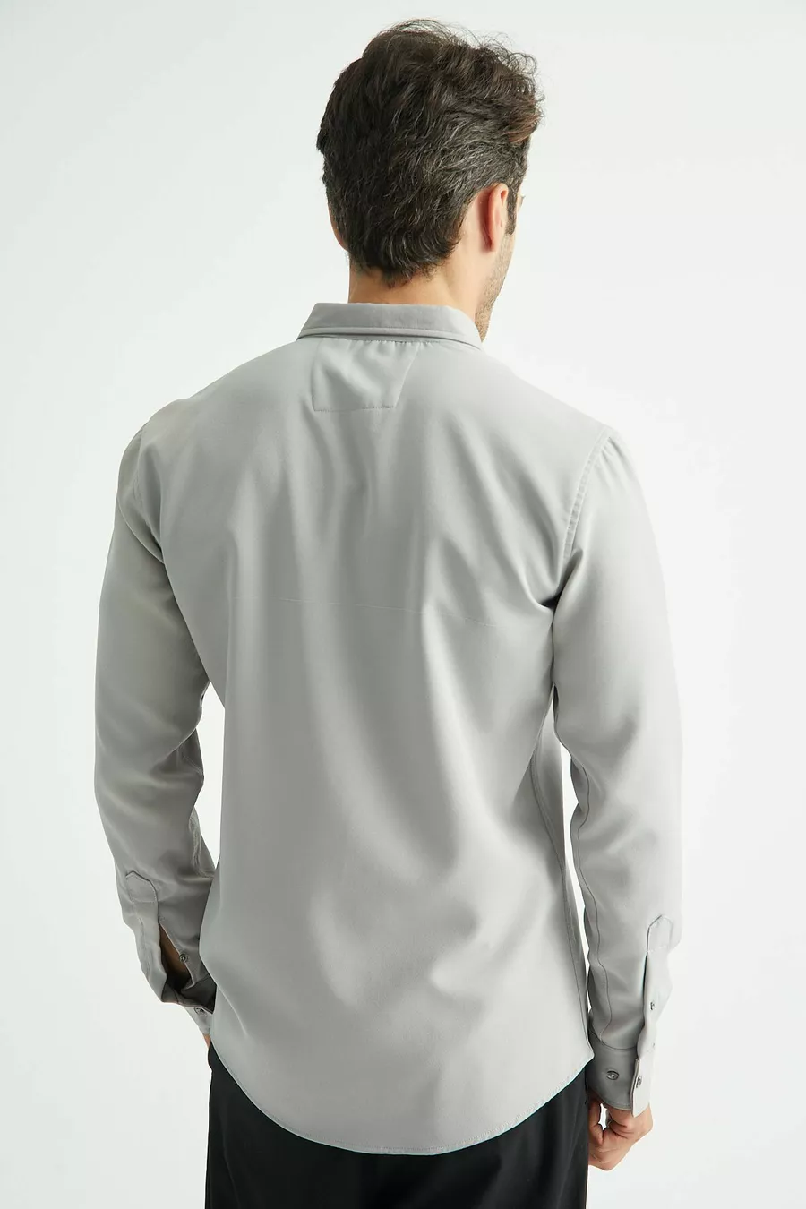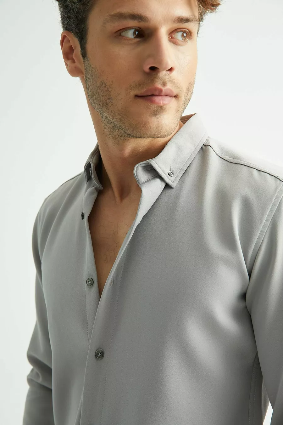 Muster: Uni Schnitt: Slim Fit Kragenart: Hemdenkragen Stoffart: Gewebt Ärmellänge: Langarm Farbe: Grau Material: Polyester Verschlussart: Knopf Produktdetails: Natürlicher Knopf Tasche: Ohne Tasche Ärmellänge: Lang Kollektion: Basic Länge: Normal Einsatzbereich: Alltag Silhouette: Slim Zusatzfeature: Kein Zusatzfeature vorhanden Webart: Tüll Druck-/Sticktechnik: Ohne Druck Personality: Cool & Comfort Nachhaltigkeitsdetails: Nein Gürtel/Zugband: Ohne Gürtel Materialzusammensetzung: 98% Polyester, 2% Lycra Waschanleitung: Typ 1 Herkunft: TR Verpackung: Ohne Verpackung