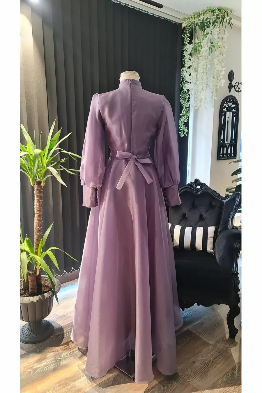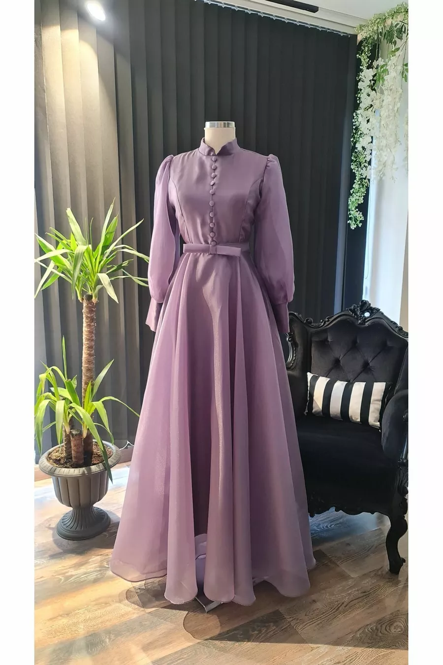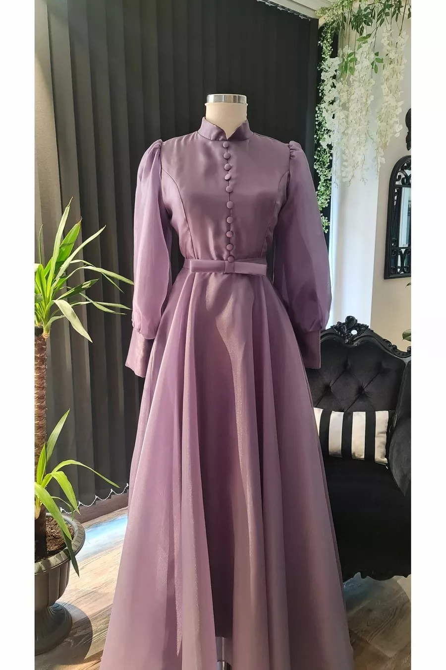 Form: Prinzessin Kragentyp: Stehkragen Material: Tüll Farbe: Lila Ärmeltyp: Langarm Muster: Einfarbig Stofftyp: Gewebt Ambiente: Chic/Nacht Webart: Organza Größe: Maxi Zusätzliche Funktion: Nicht im Inneren angezeigt Persona:Fashion Forward Silhouette:A-Linie Ärmellänge: Lang Sammlung:Hijab-Kleidung Alter:Alle Altersgruppen Zustand des Liners: Gefüttert