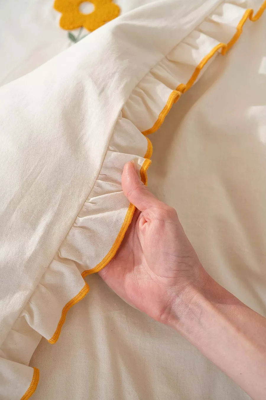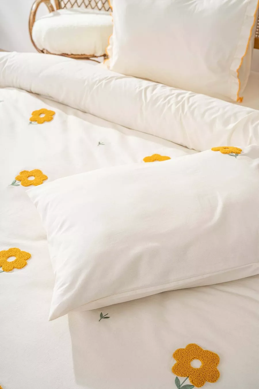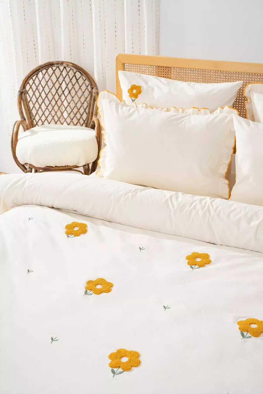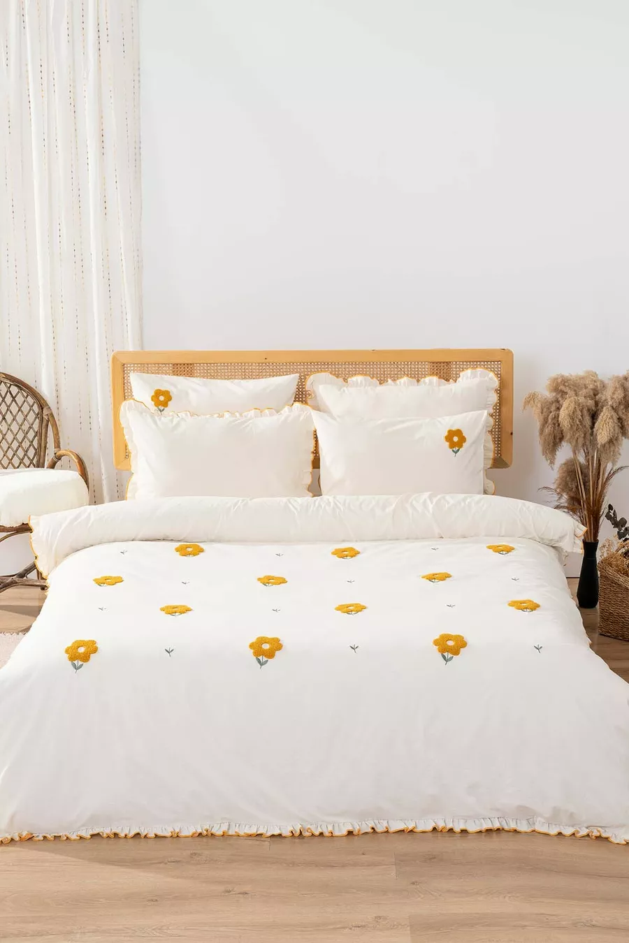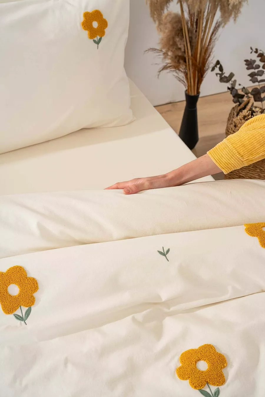 Material: Baumwolle Größe/Abmessung: 200 x 220 Bettlaken Typ: Ohne Gummizug Farbe: Gelb Muster: Blumig Waschanleitung: 1181721 Verpackungszustand: In Box Herkunft: TR