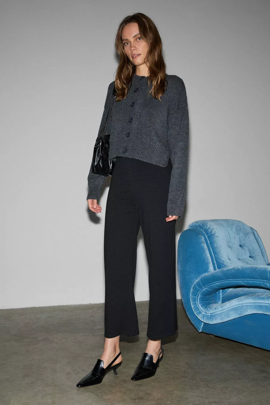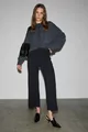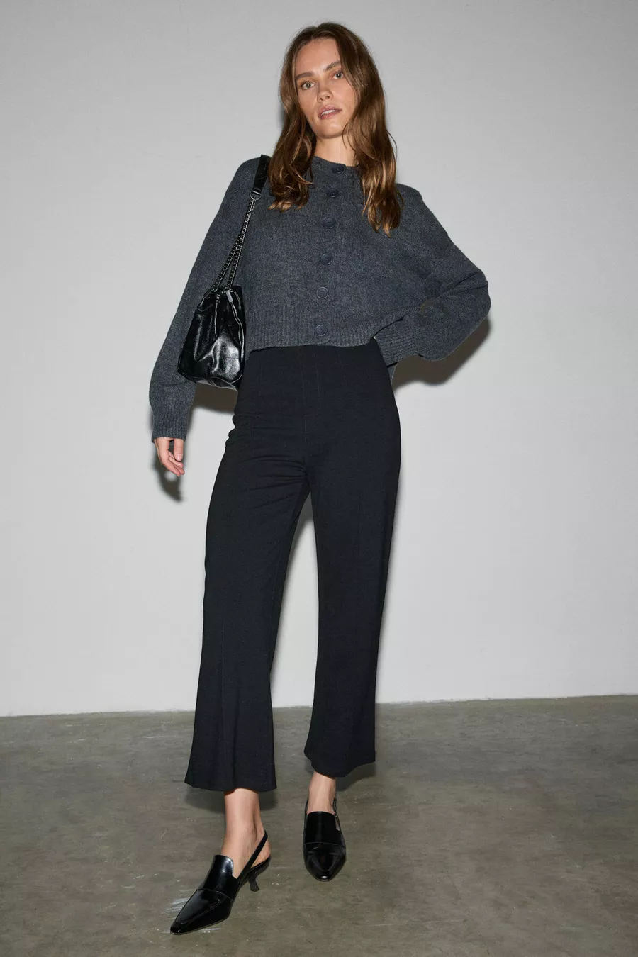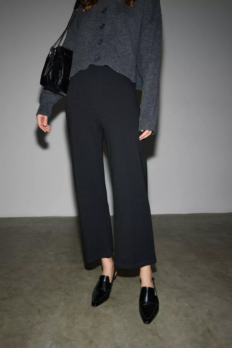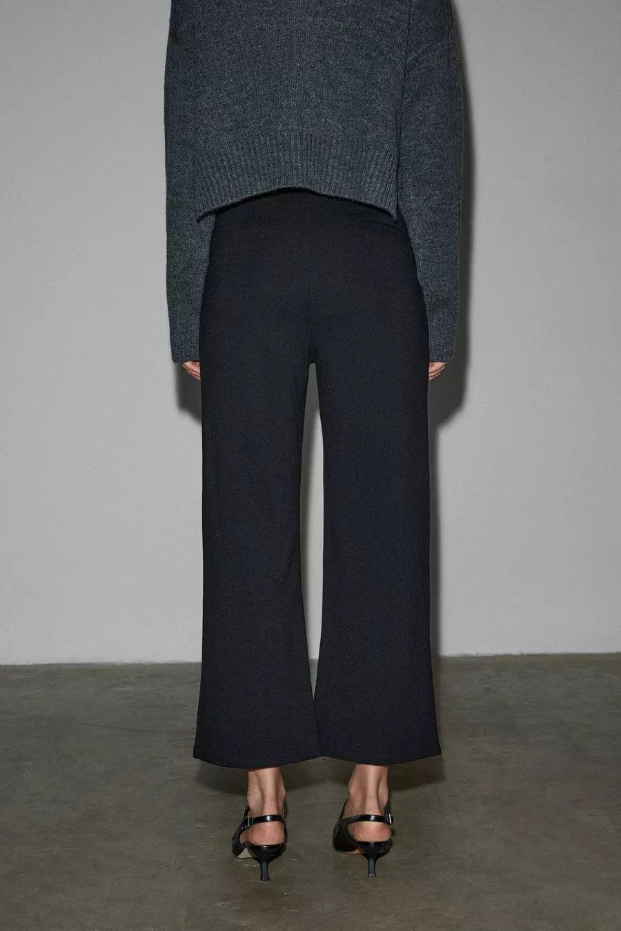 Freda Damen Hohe Bund Interlock Dickes Stoff Flare-Hose Mit Gerippter Vorderseite Und Elastischem Bund Schwarz