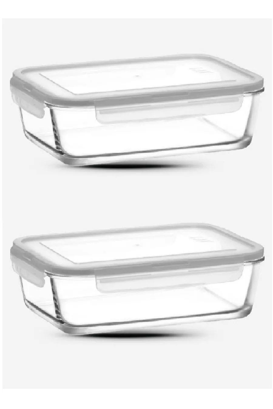 Fresco Glas-Aufbewahrungsbehälter mit Deckel, 2er Set cc, rechteckig () mit weißem Deckel