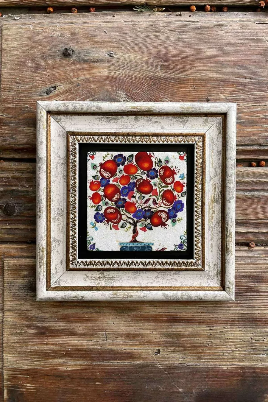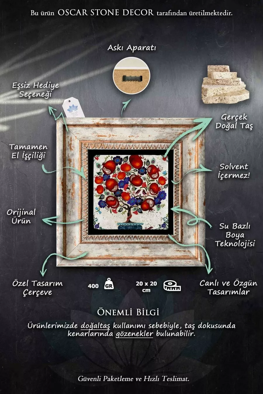Gerahmtes Steintableau cm 4-teiliges Set () mit Nazar-Amulett, Granatapfelbaum