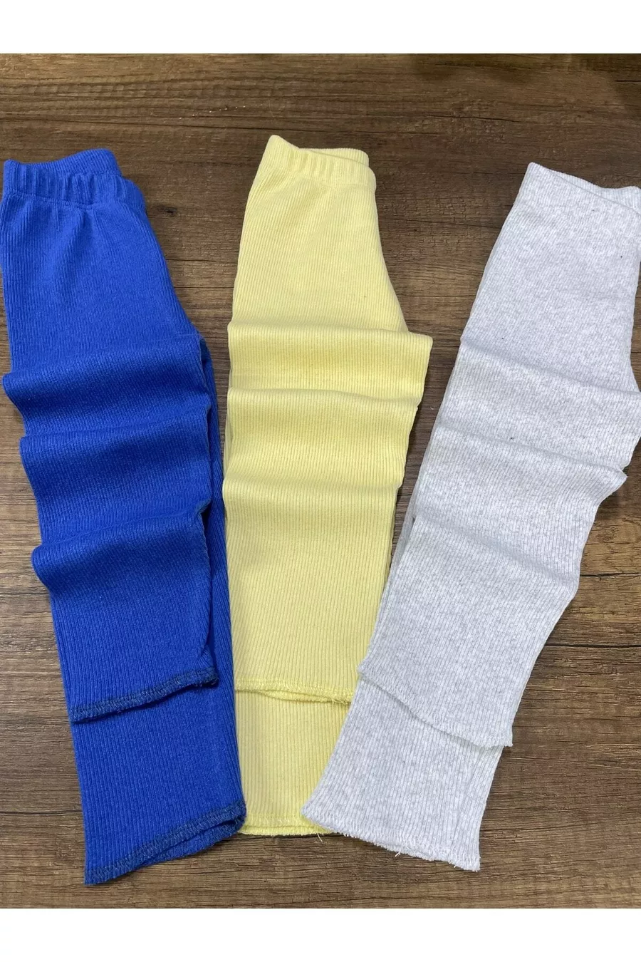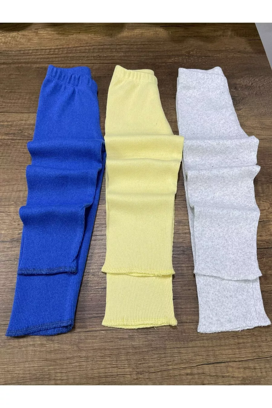 Gerippte, elastische Leggings in Dunkelblau - Gelb - Grau, 3er-Set für Mädchen und Jungen, saisonale Hose
