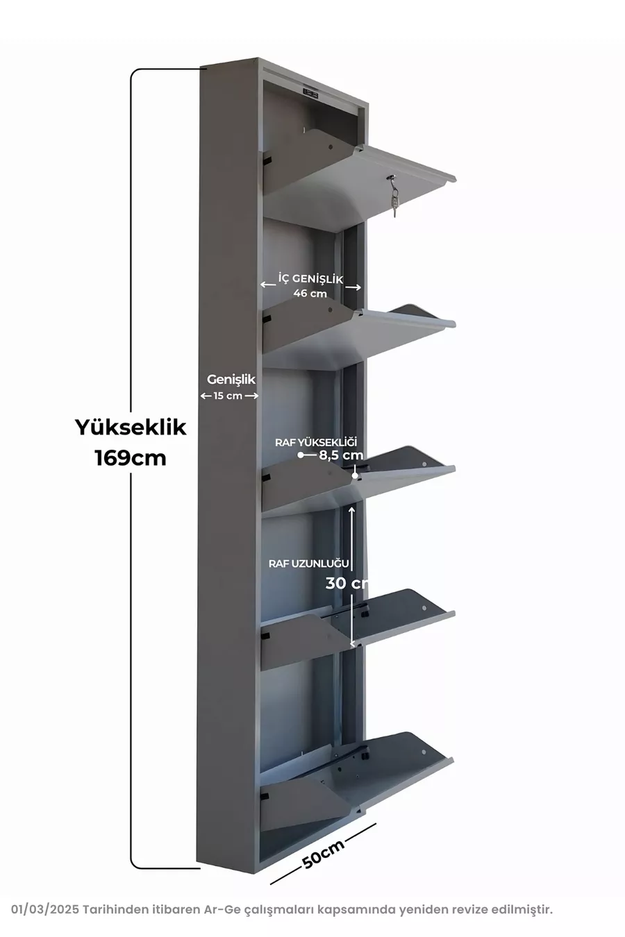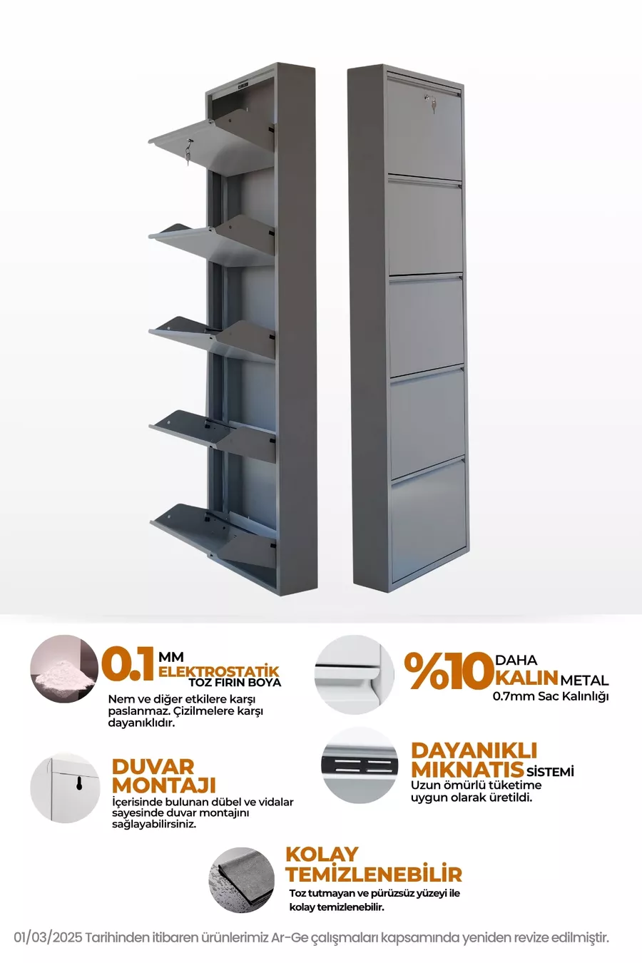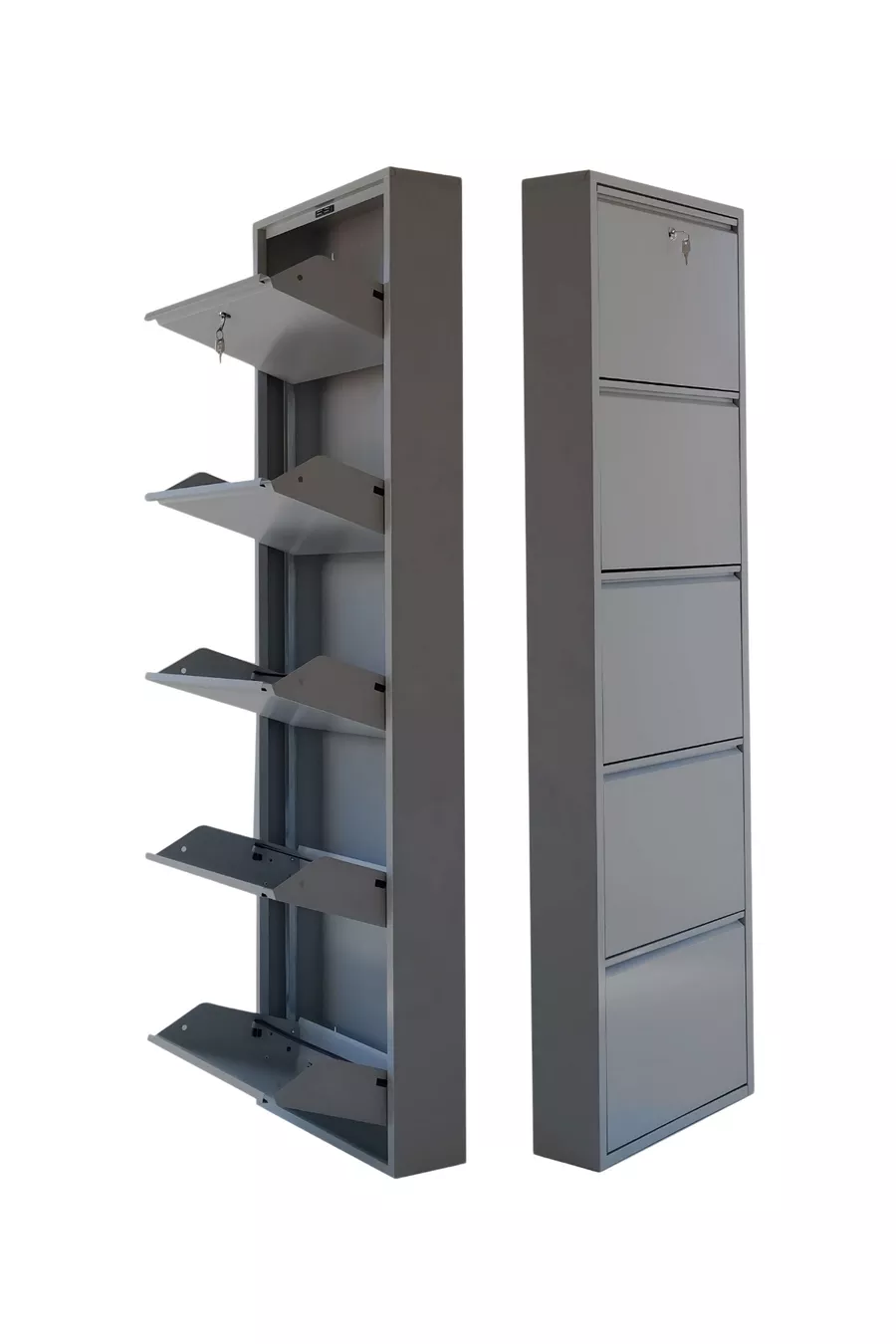 Gesperrtes 5-teiliges Metall-Schuhregal - Hellgrau
