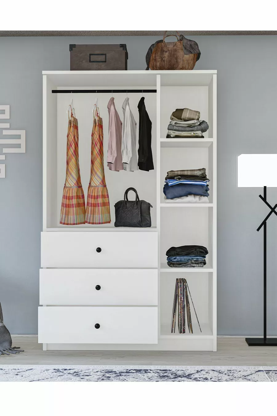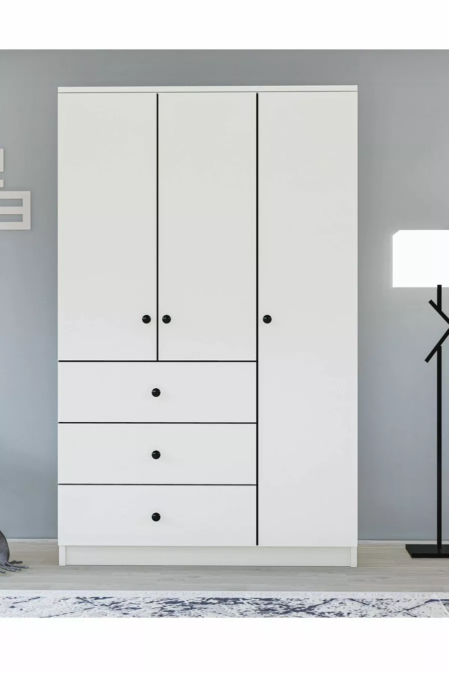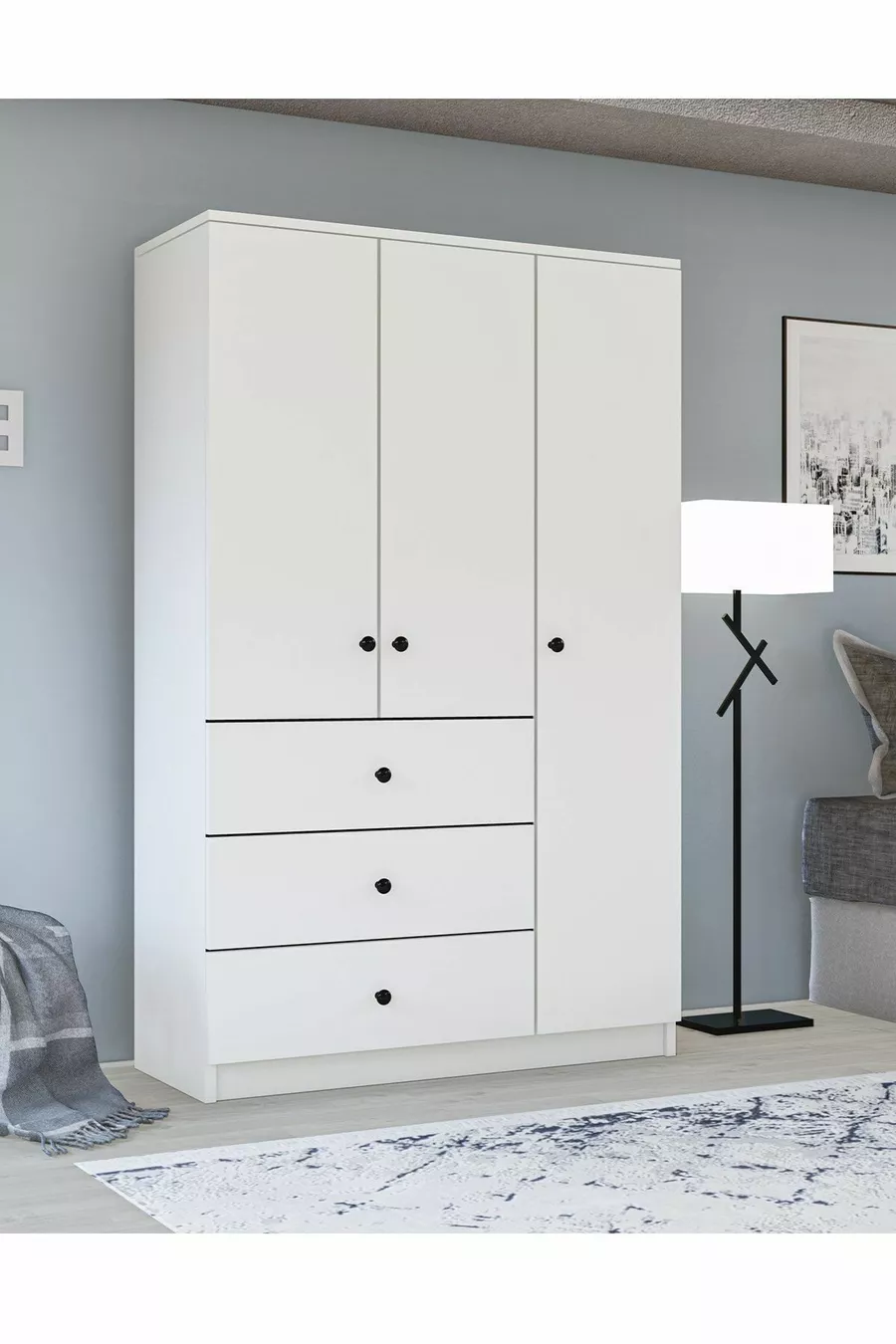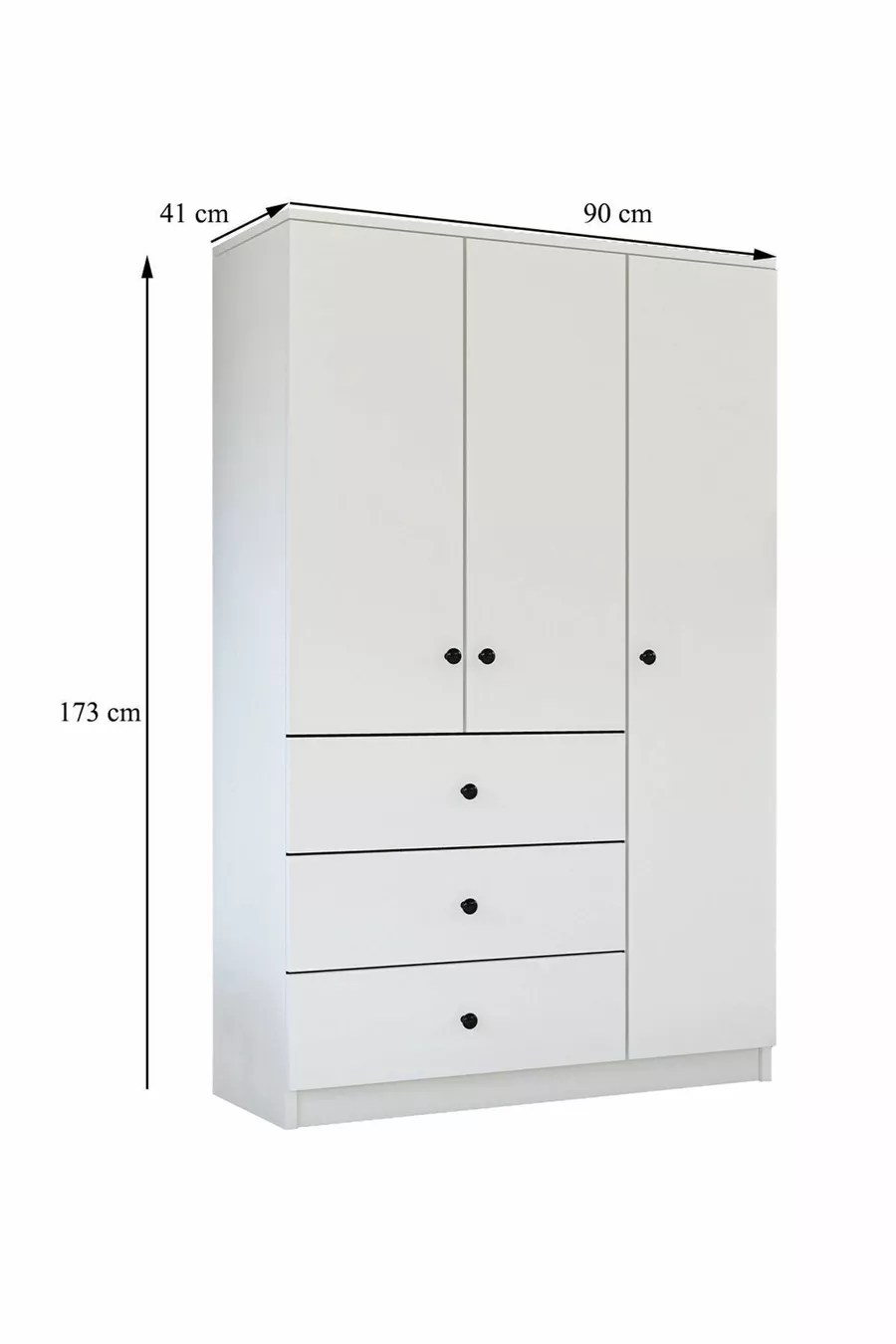 Gm Ece Lüx 3-türiger Kleiderschrank mit 3 Schubladen und Knopfgriffen