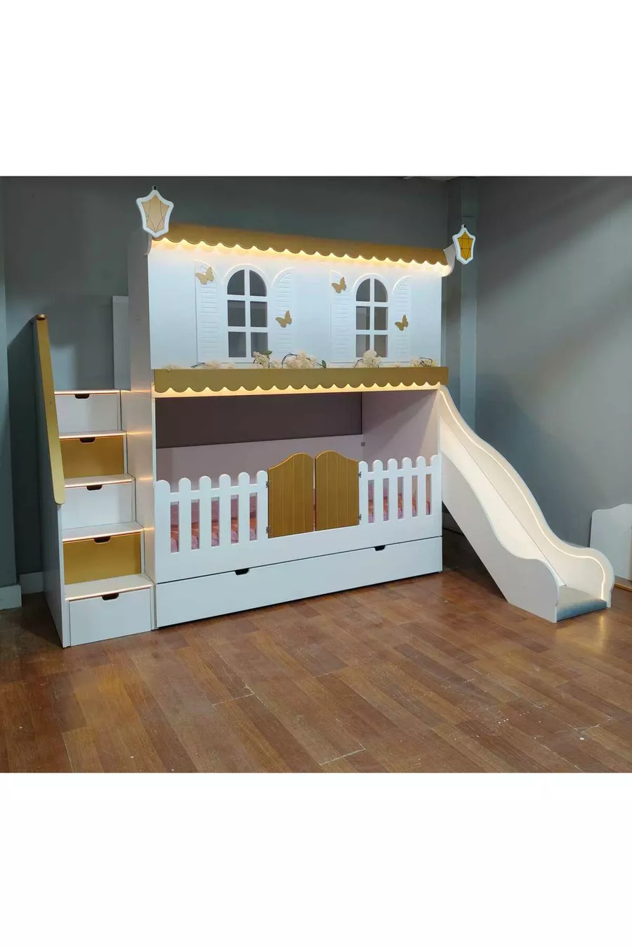 Farbe: Gold Material: MDF Größe: Doppelbett Maße: 90 x 190 Garantiezeit: 5 Jahre Stil: Modern Thema / Stil: Modern Ausziehbares Bett: Ja Herkunft: TR Merkmal: Farbwechsel