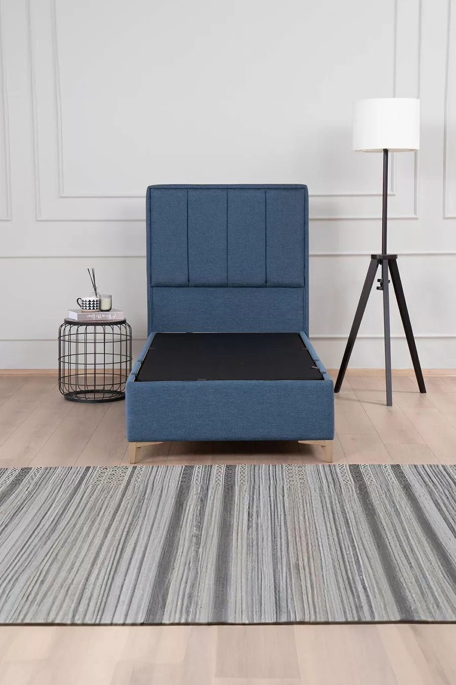 Größe: Einzelbett Material: Metall Garantiezeit: 2 Jahre Set-Typ: Bettgestell + Kopfteil Farbe: Blau Stil: Modern Thema / Stil: Skandinavisch Eigenschaft: Mit Stauraum