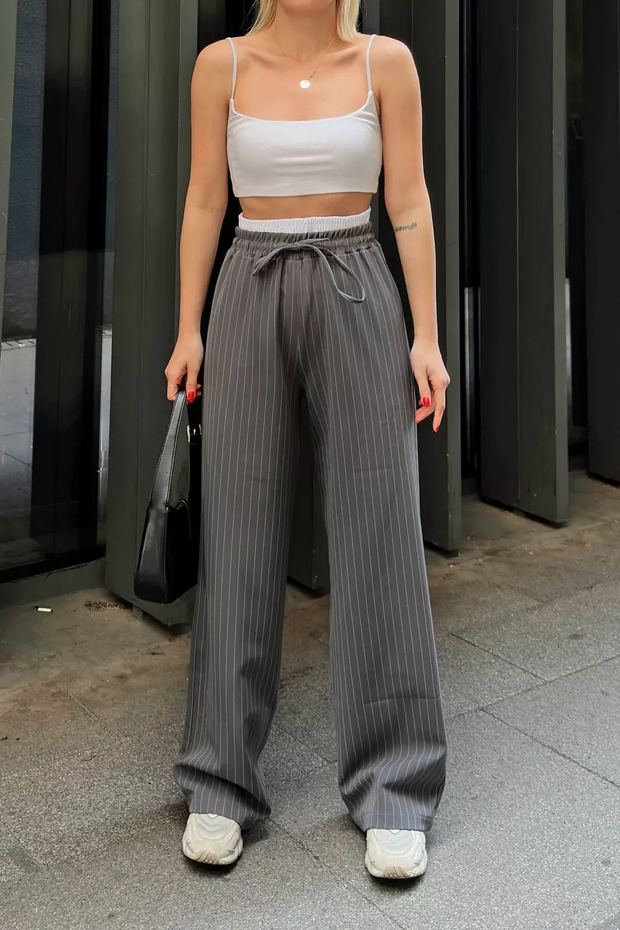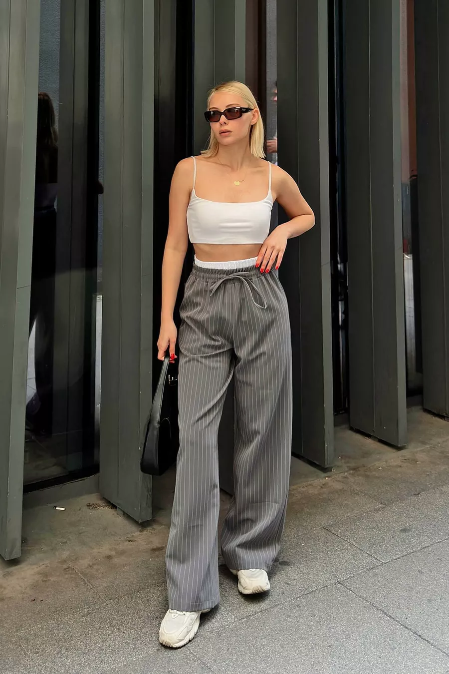 Material: Baumwolle Polyester Stoffart: Gewebt Hosenbeintyp: Weites Bein Bund: Hoher Bund Muster: Gestreift Farbe: Grau Tasche: Mit doppelten Taschen Produktdetails: Mit Bindungsdetails Kollektion: Basic Futter: Nicht gefüttert Länge: Regular Silhouette: Gerade Anlass: Lässig/Alltag Schnitt: Locker Zusätzliches Merkmal: Elastisch Webart: Strukturierte Webung Persona: Cool & Komfort Druck/Sticktechnik: Ohne Druck Gürtel/Bindung: Mit Kordelzug Nachhaltigkeitsdetails: Nein Materialzusammensetzung: 70% Baumwolle, 30% Polyester Waschanleitung: Bei maximal 30 °C waschen. Nicht bleichen. Nicht im Trockner trocknen. Bei mittlerer Temperatur bügeln. Nicht chemisch reinigen. Herkunft: TR Packungsinhalt: Einzelstück