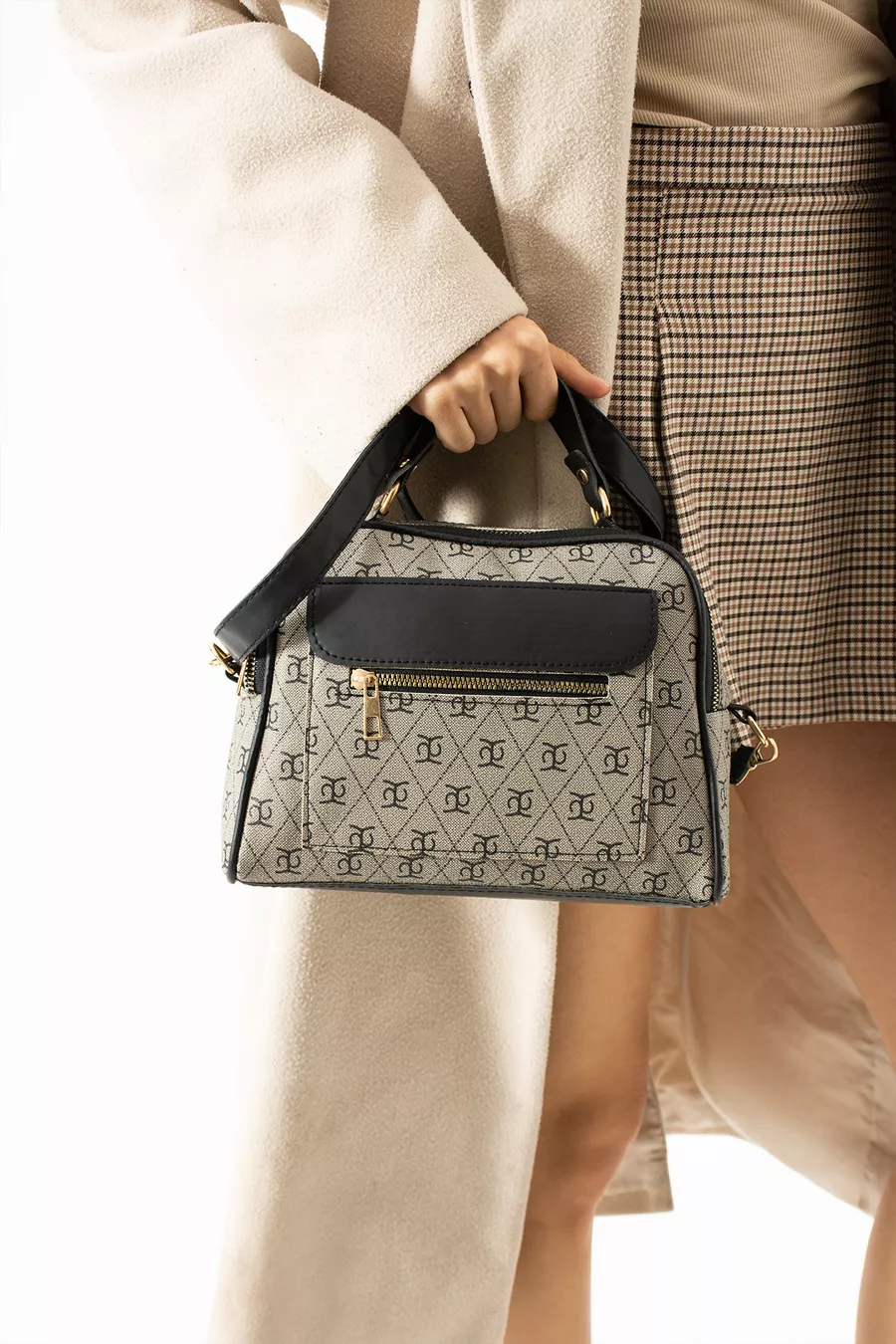 Graue Dreiaugige Damen Schulter- und Umhängetasche Größe