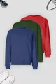 Herren 3er-Pack Indigo-Rot-Oliv Sweatshirt Basic Rundhalsausschnitt