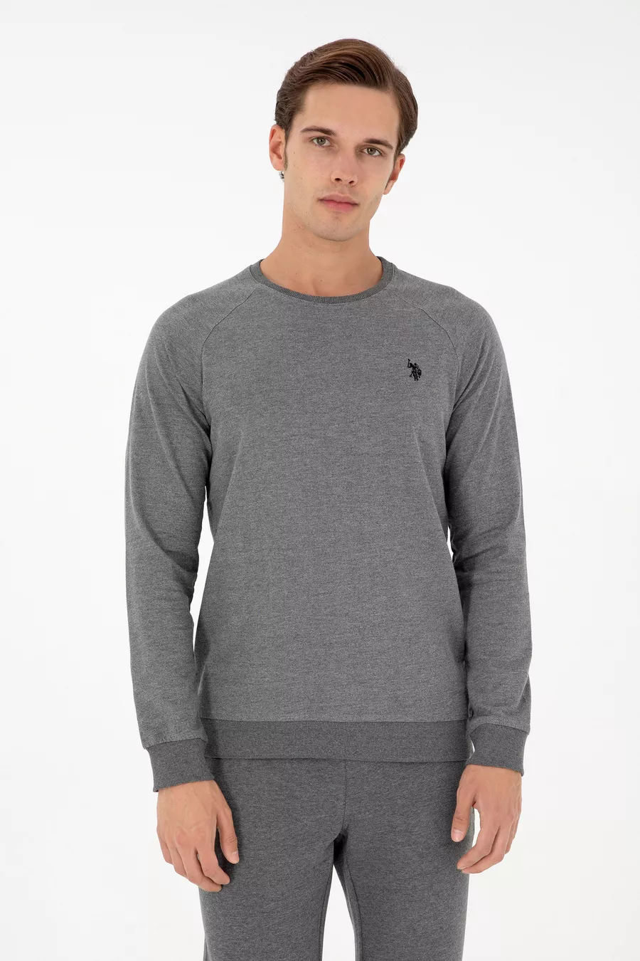 Herren Anthrazit Melange Basic Sweatshirt
