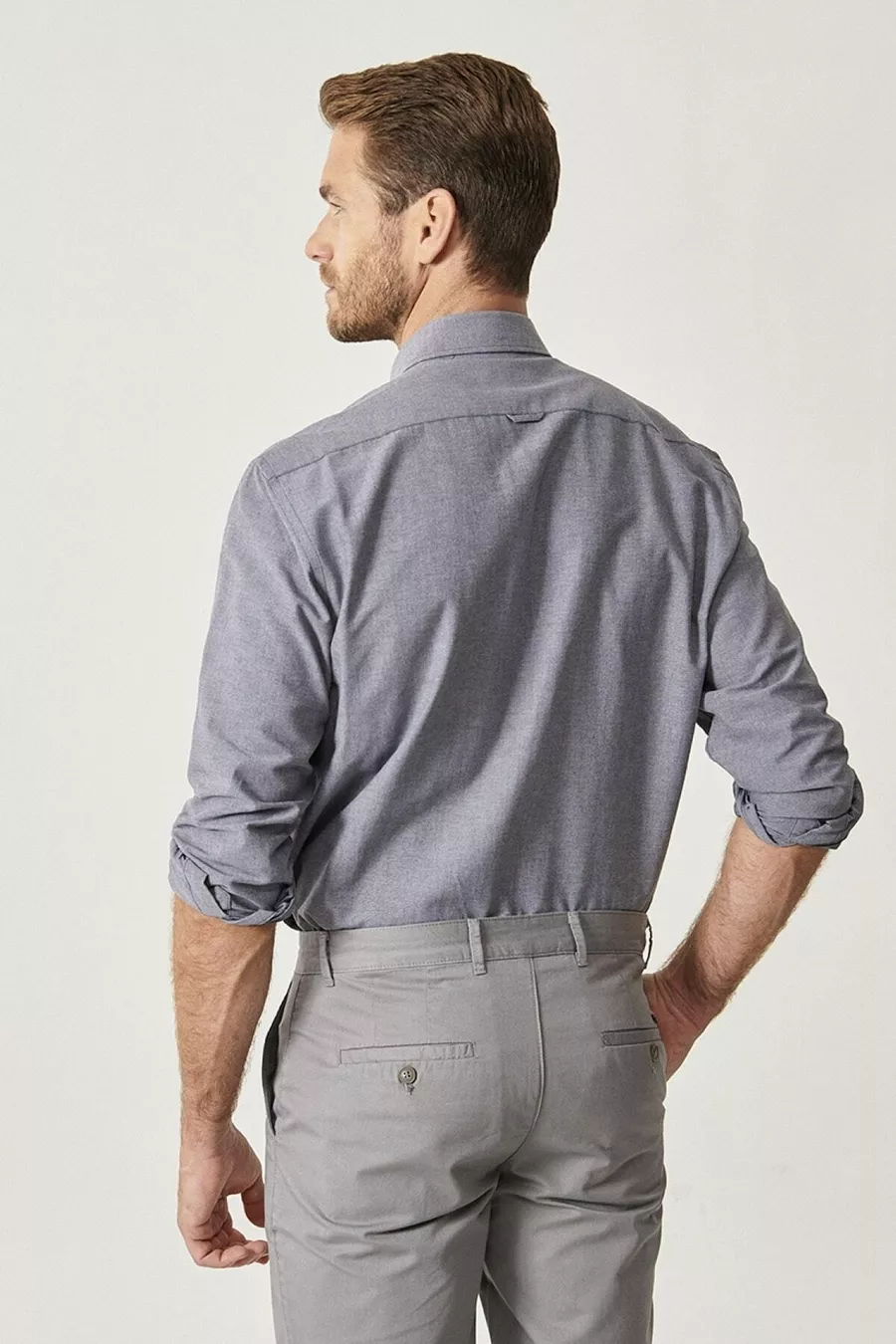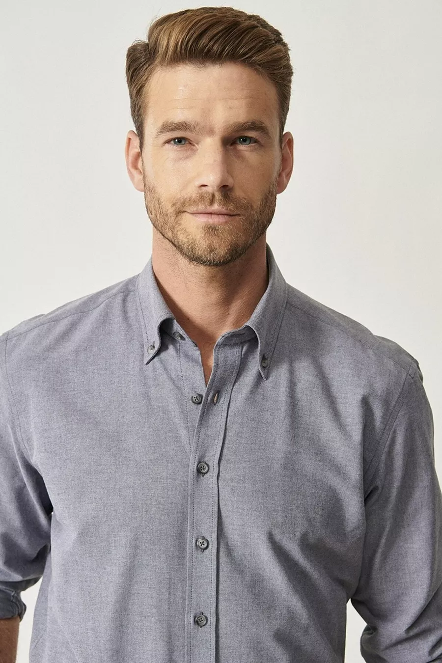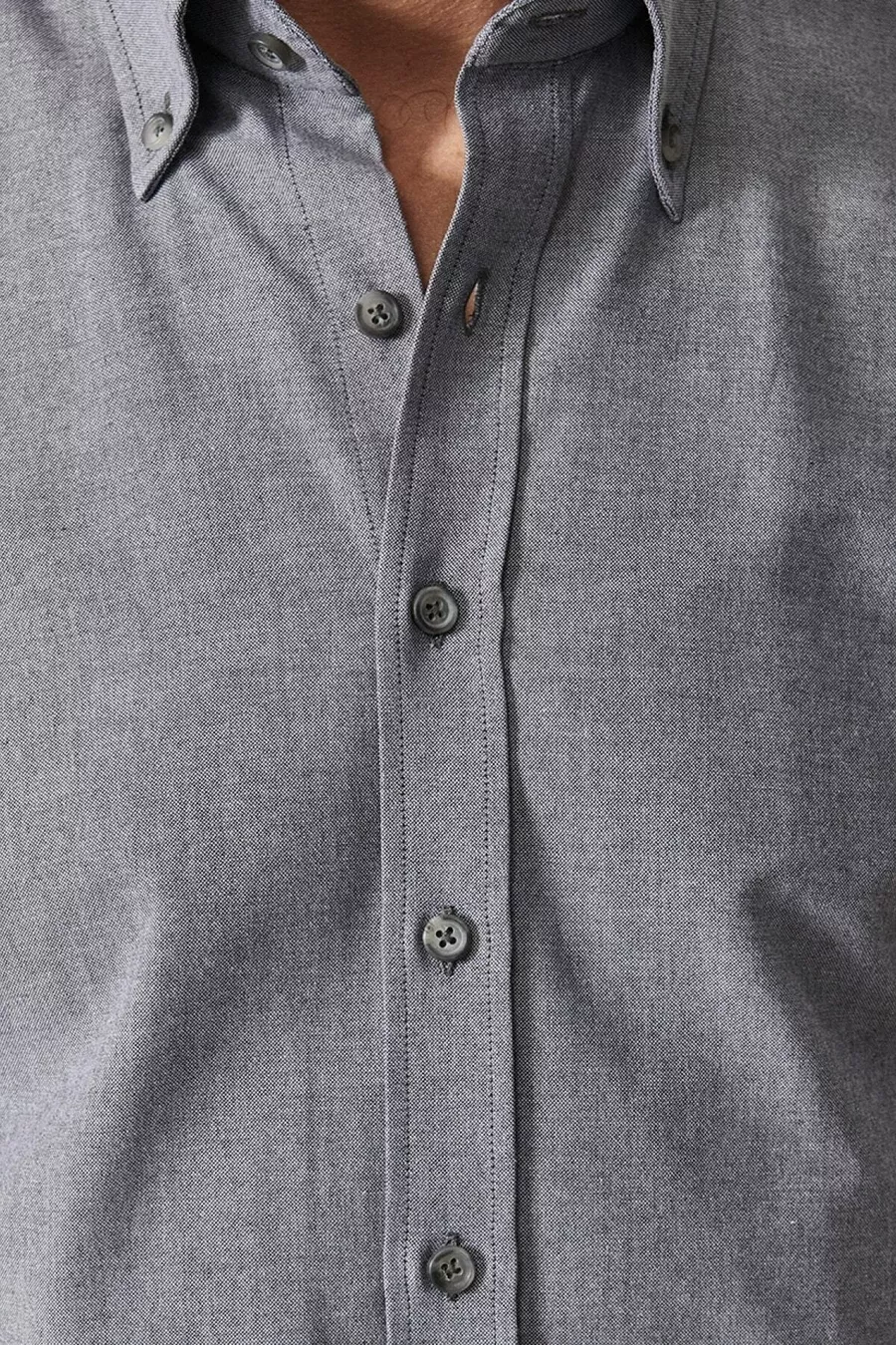 Herren Anthrazit Button-Down-Kragen Tailored Slim Fit Oxford Hemd