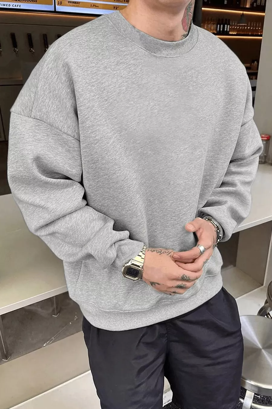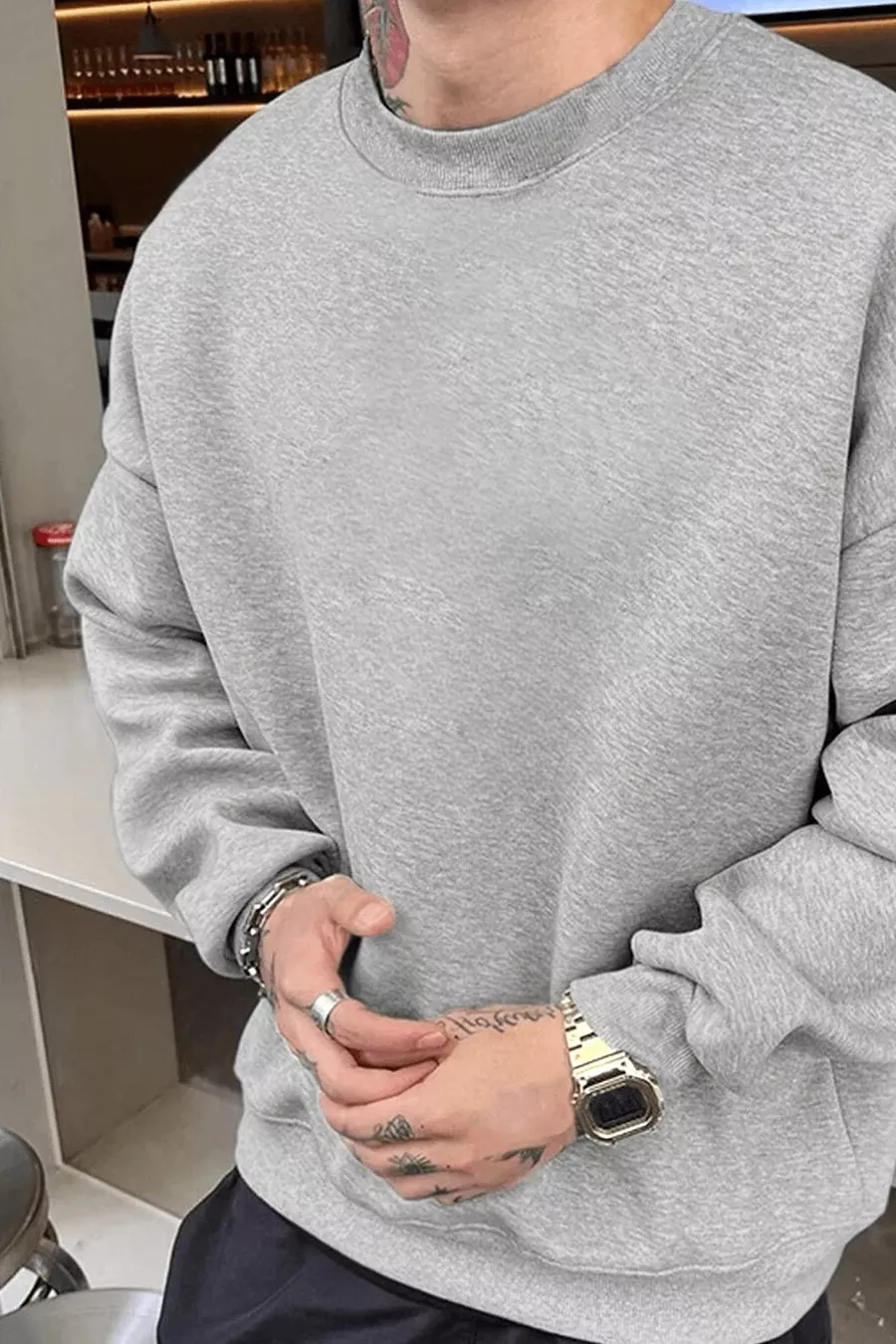 Herren Basic Sweatshirt in schlichtem Grau, ohne Aufdruck, mit Rundhalsausschnitt, Oversize und locker geschnitten