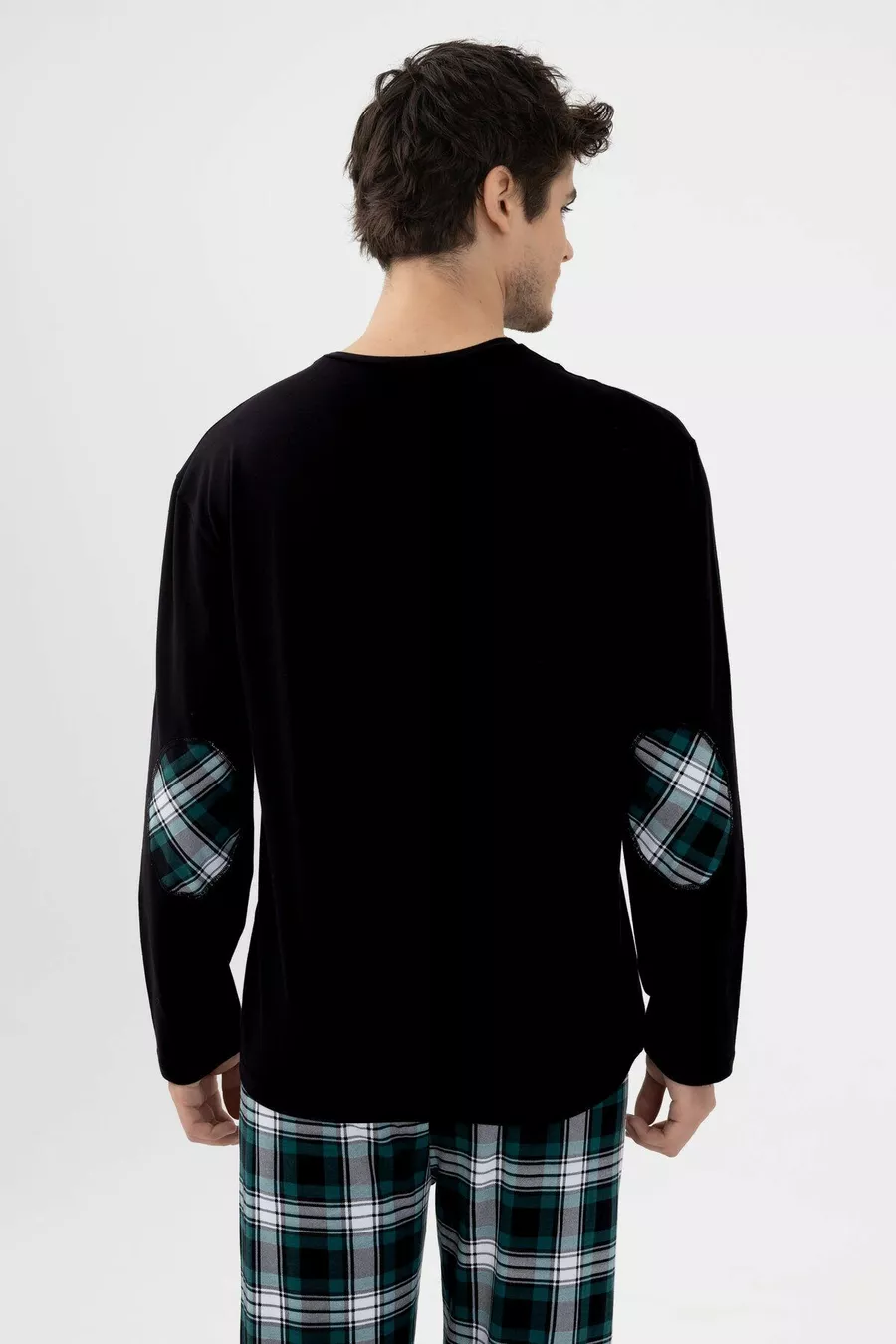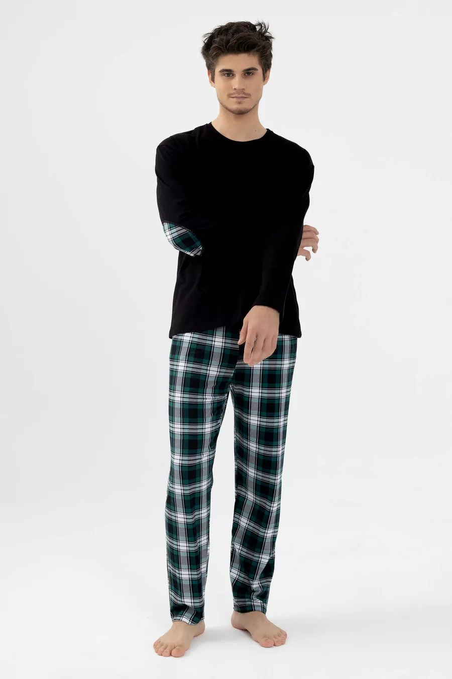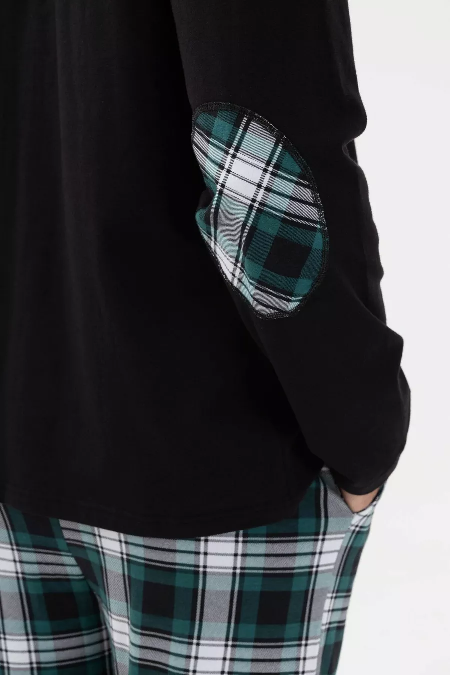 Herren Baumwoll-Pyjama-Set mit langen Ärmeln und karierten Flicken